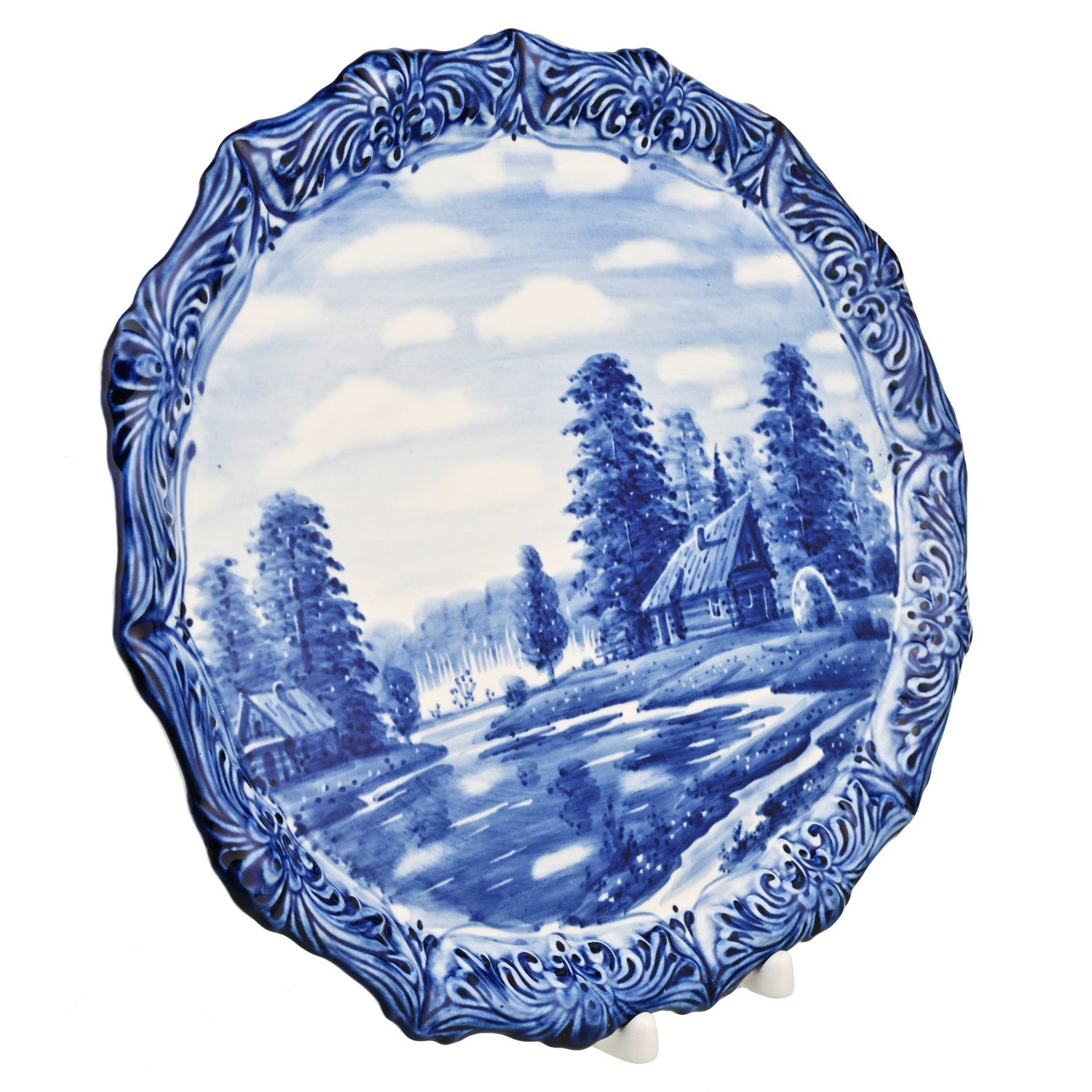 Тарелка декоративная с росписью "Лето в деревне". Гжель