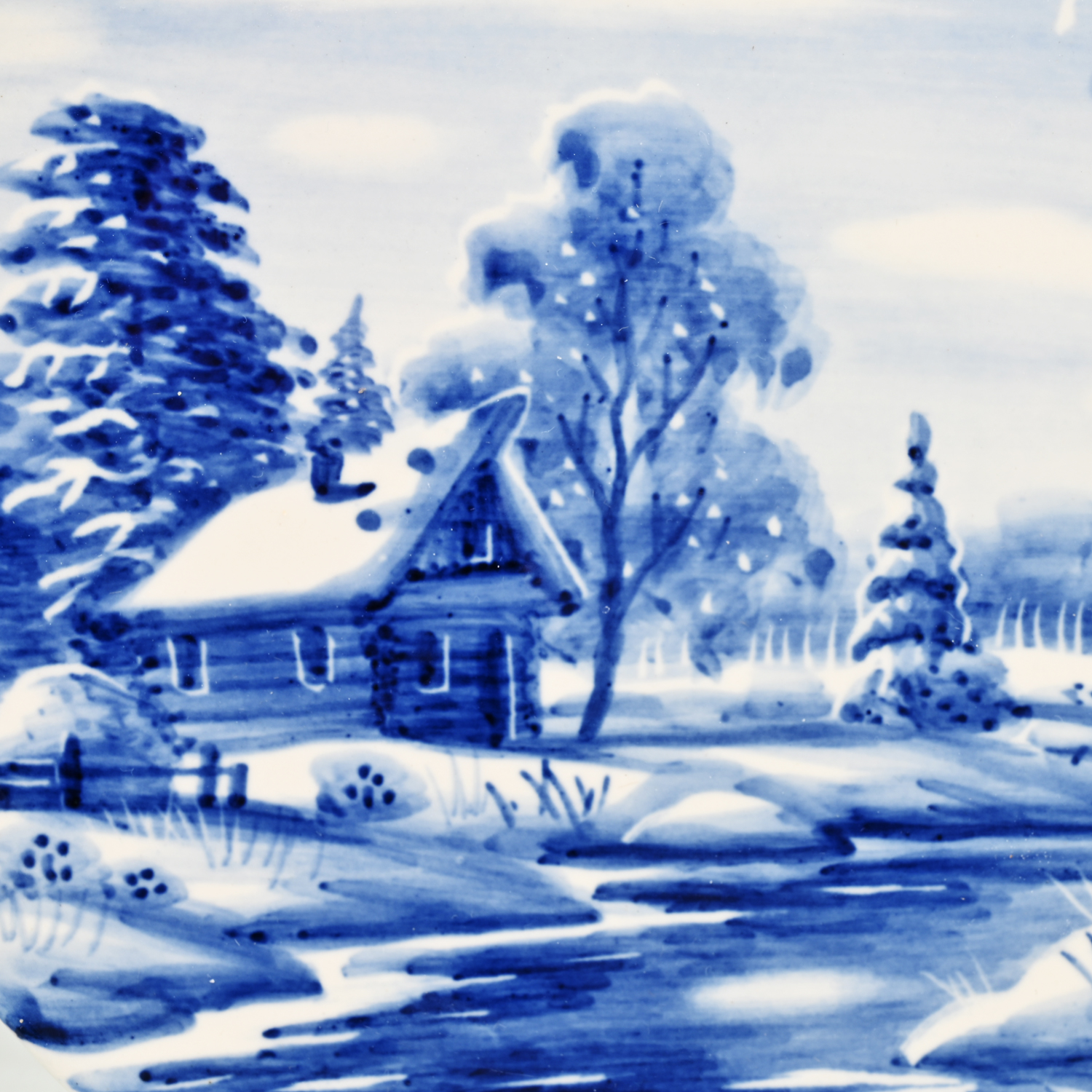 Русские подарки и сувениры → Интерьерные изделия → Декоративные тарелки → Тарелка декоративная с росписью "Зима в деревне". Гжель