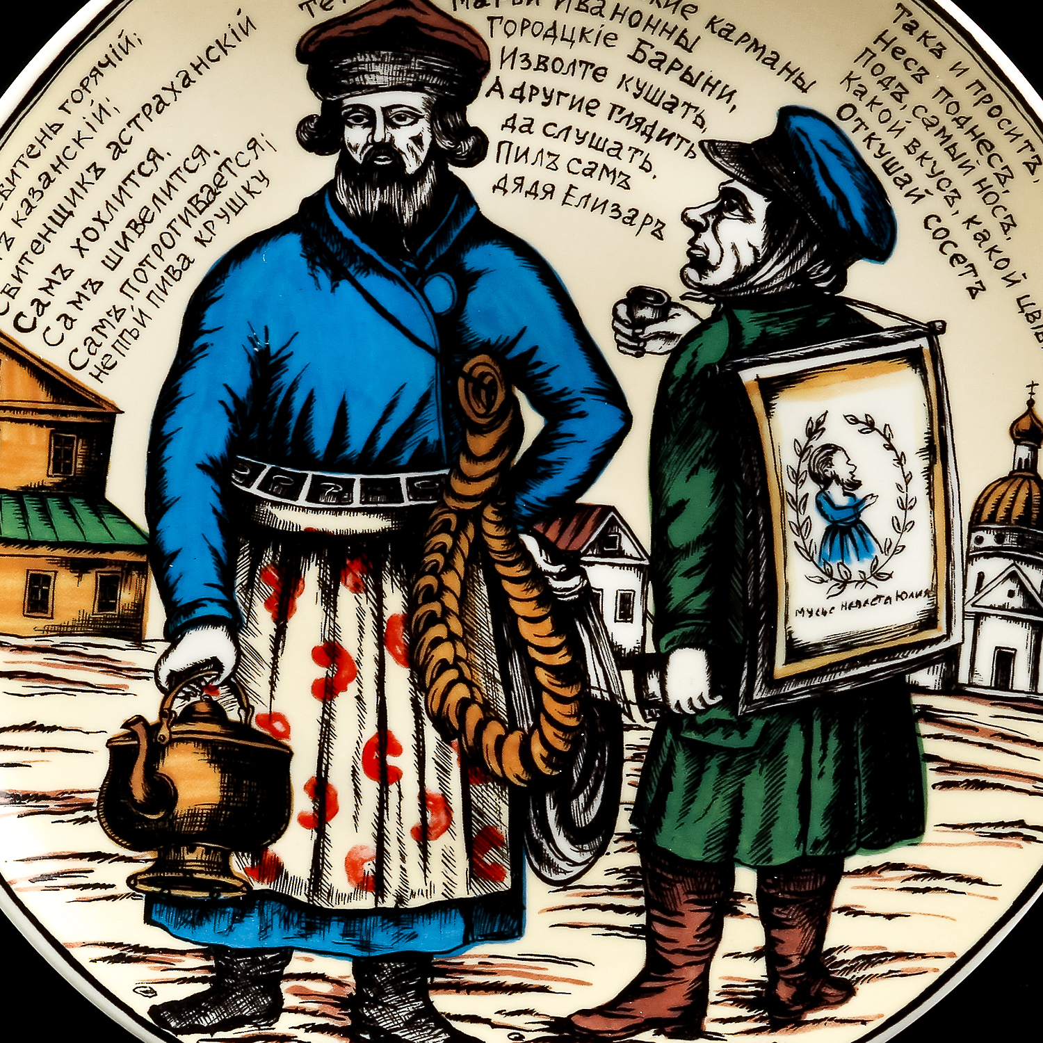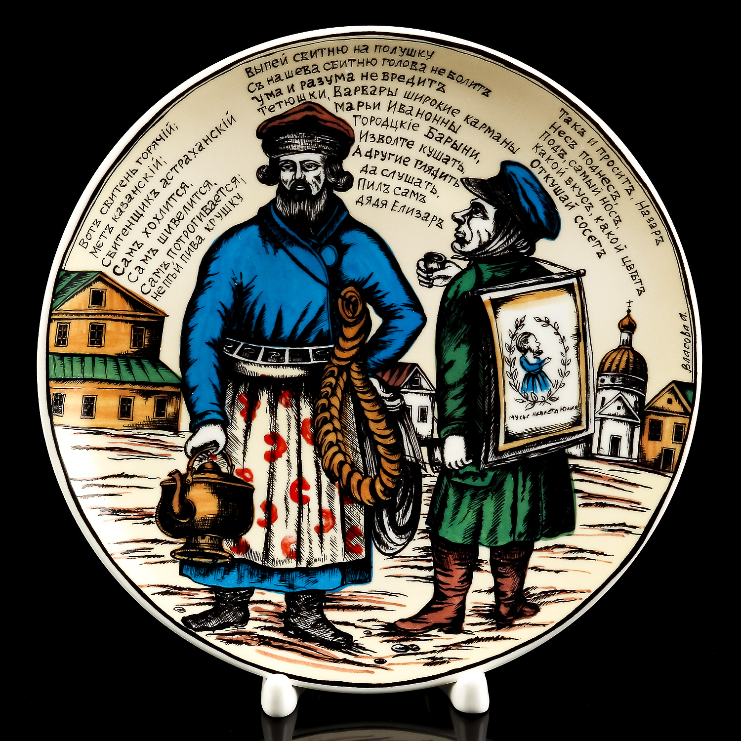 Коллекционная тарелка Русский лубок "Ходебщик и сбитенщик"