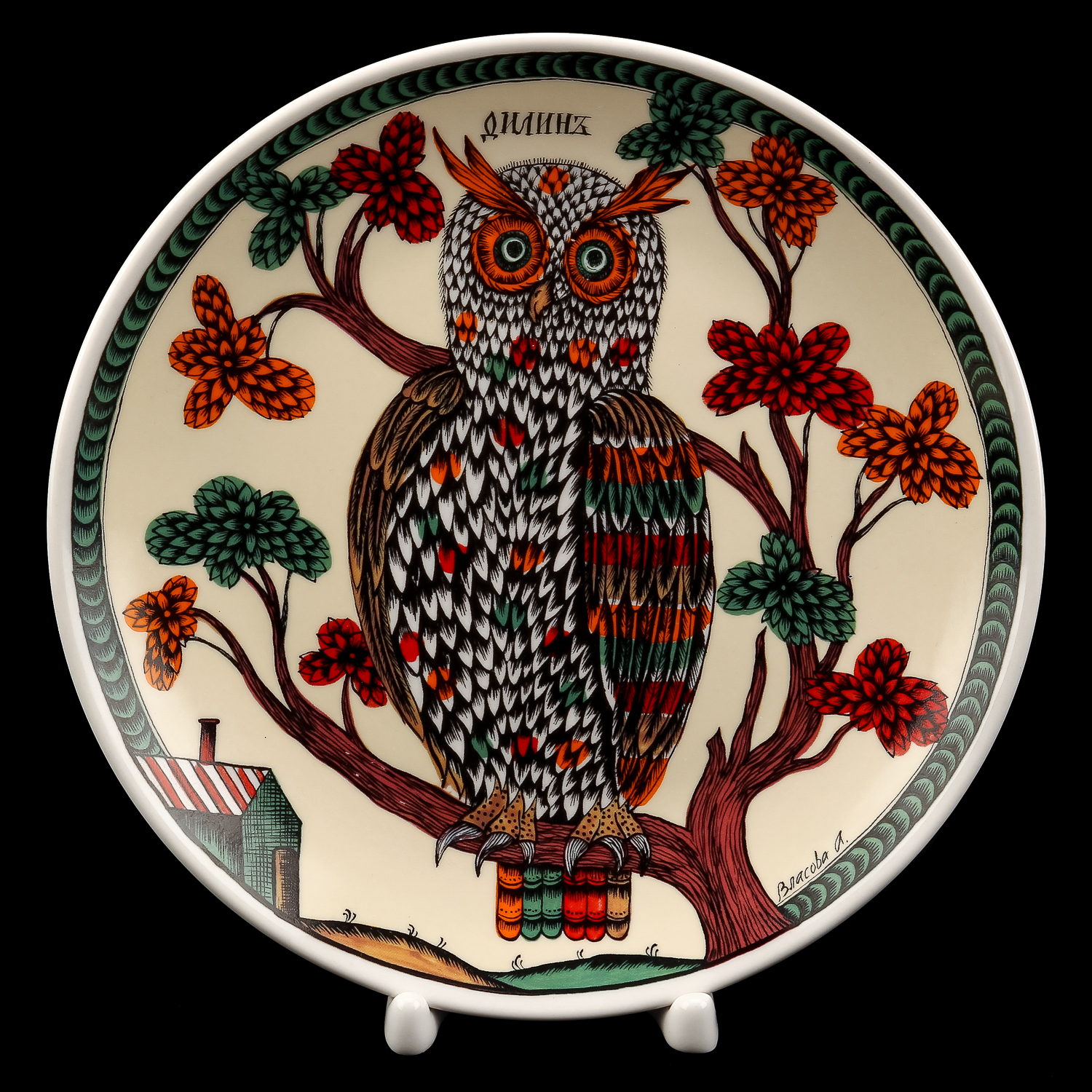 Русские подарки и сувениры → Интерьерные изделия → Декоративные тарелки → Коллекционная тарелка Русский лубок "Филин"