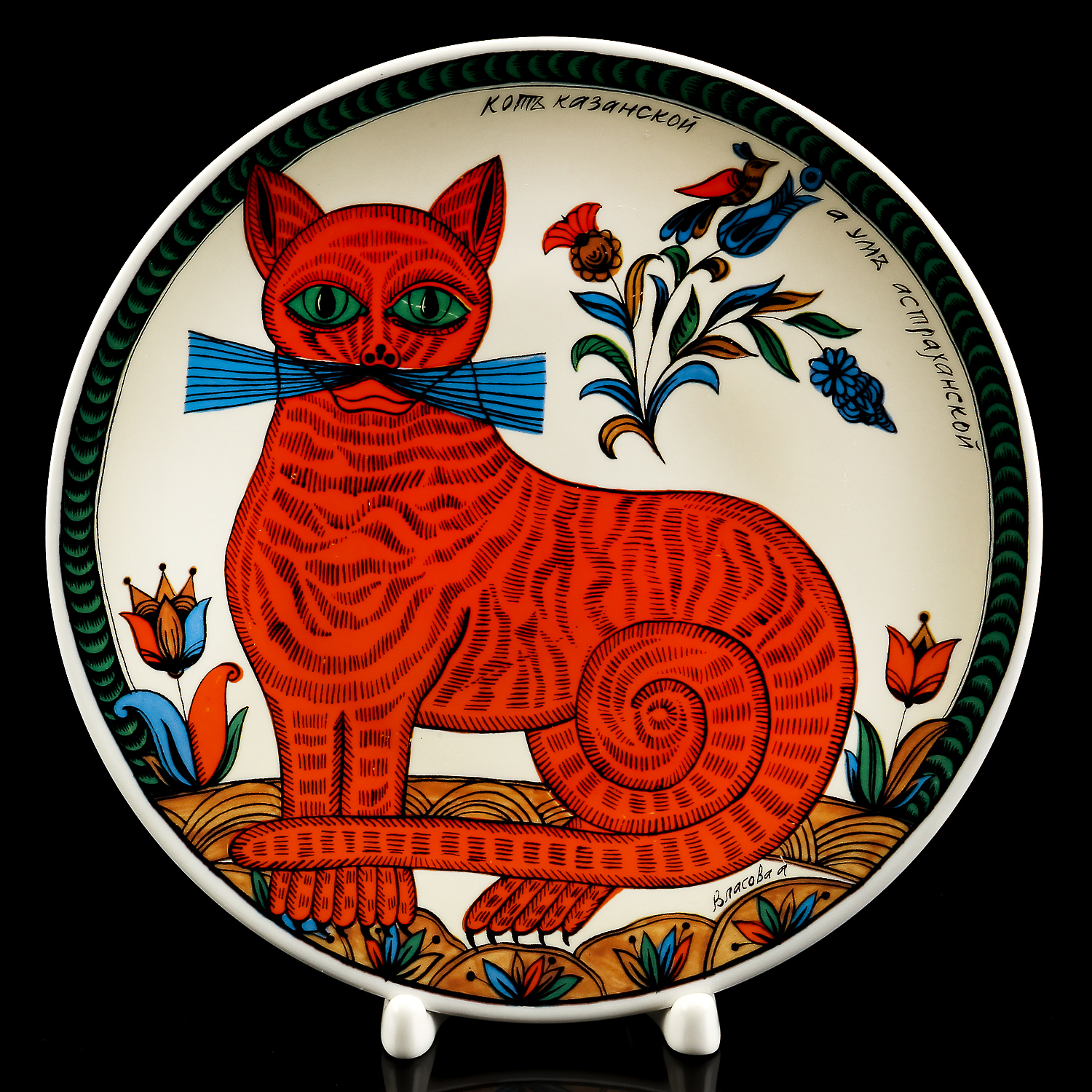 Коллекционная тарелка Русский лубок "Кот Казанский"