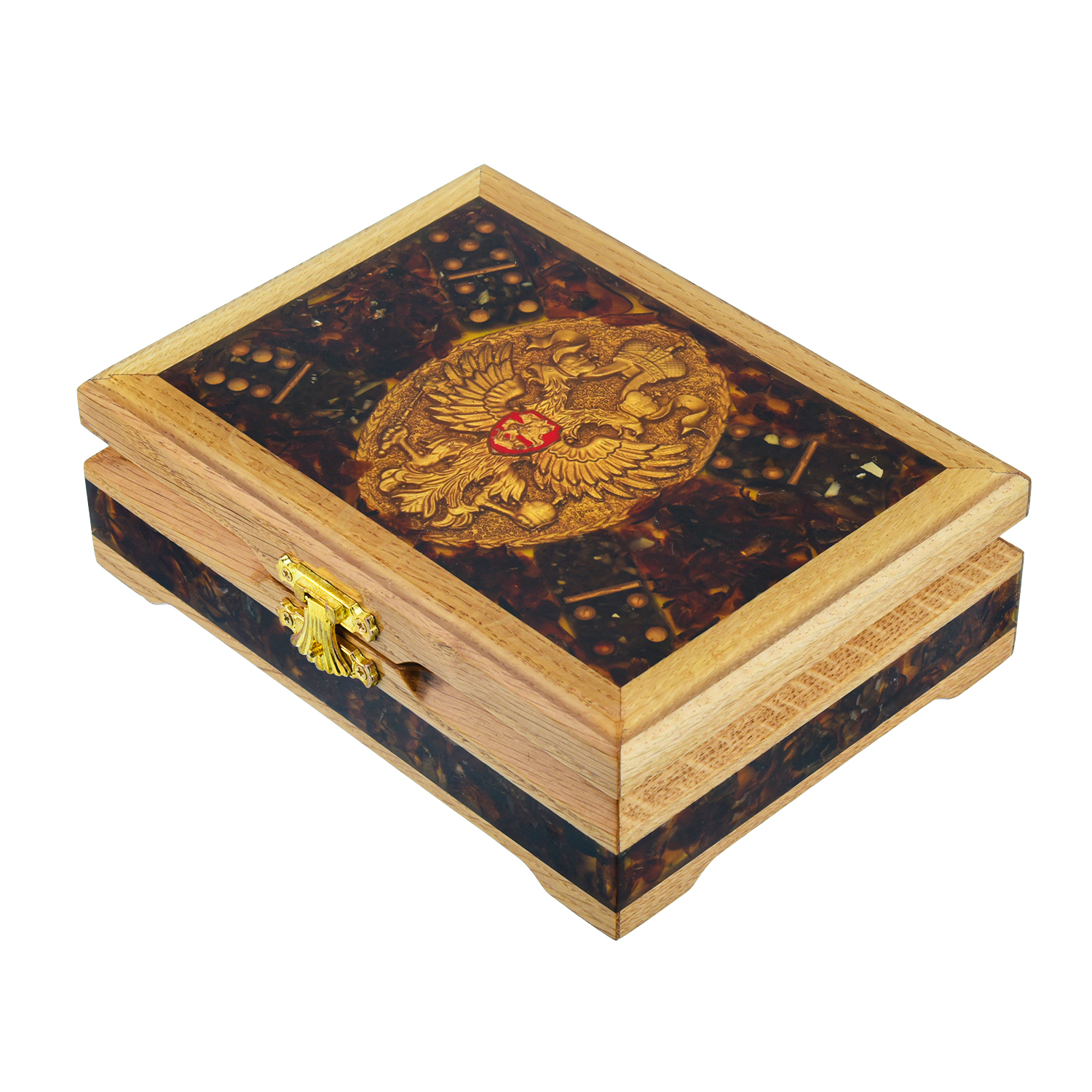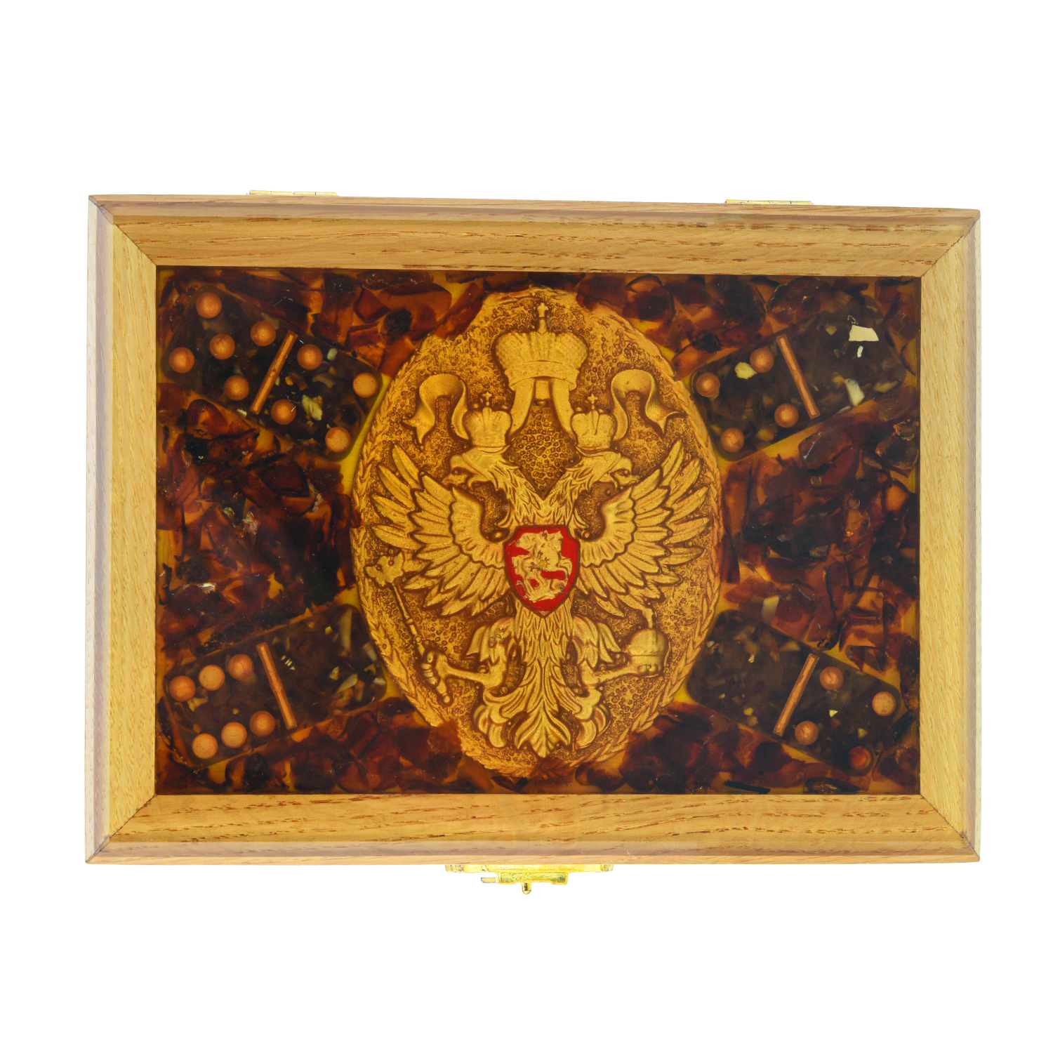 Домино из янтаря "Герб РФ".Материалы: дерево, янтарь, полиэфирная смола.