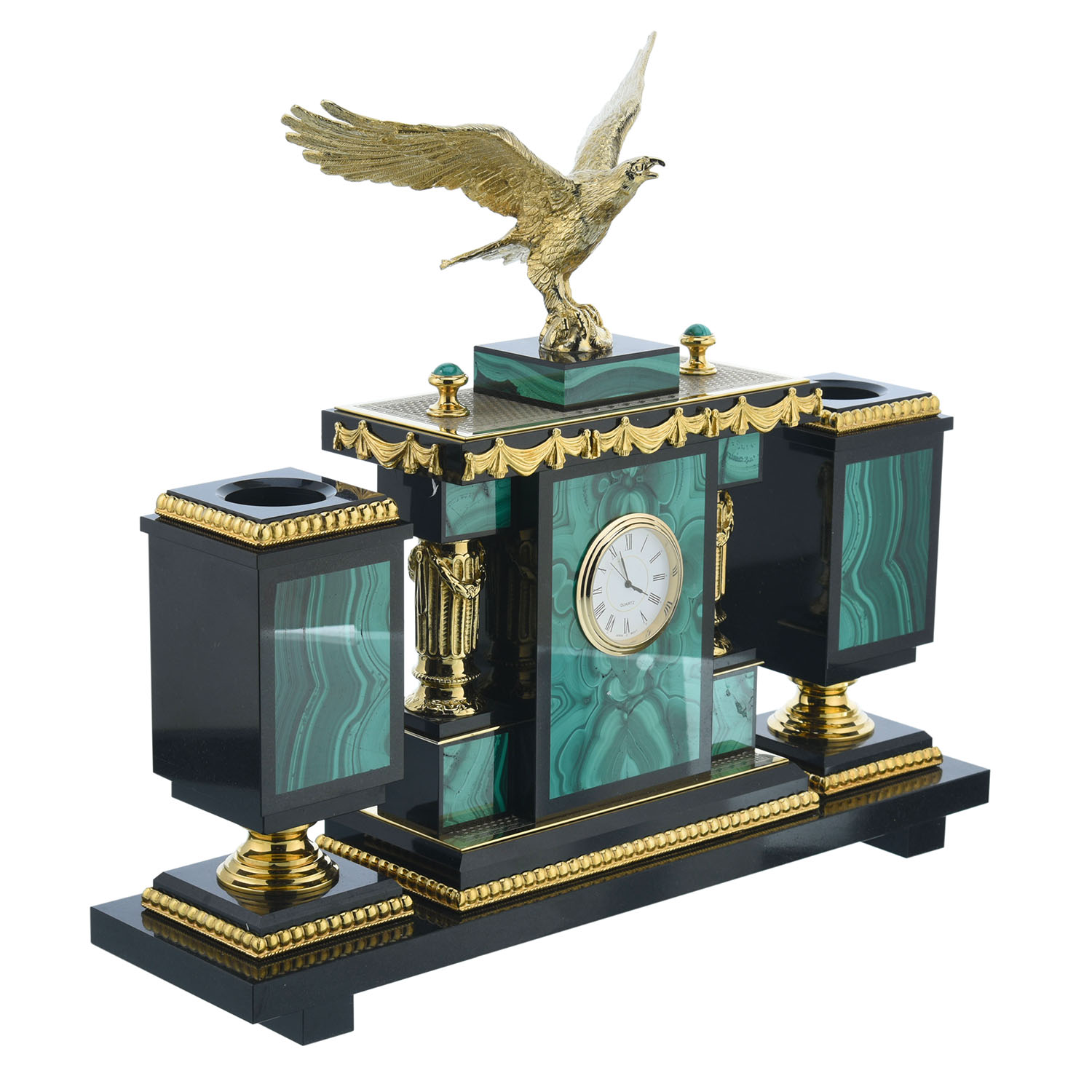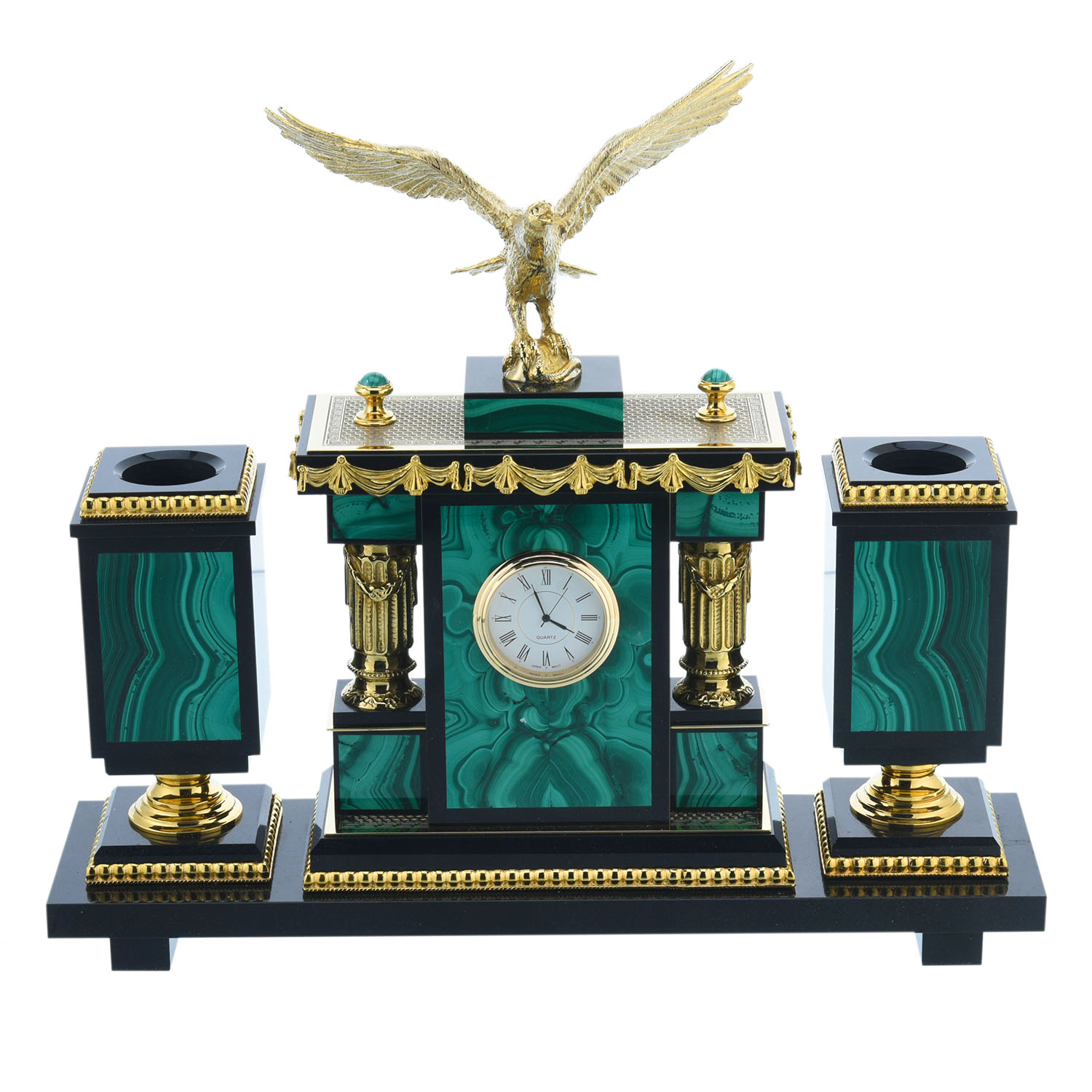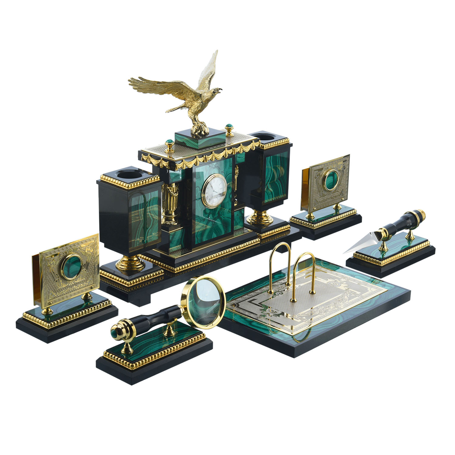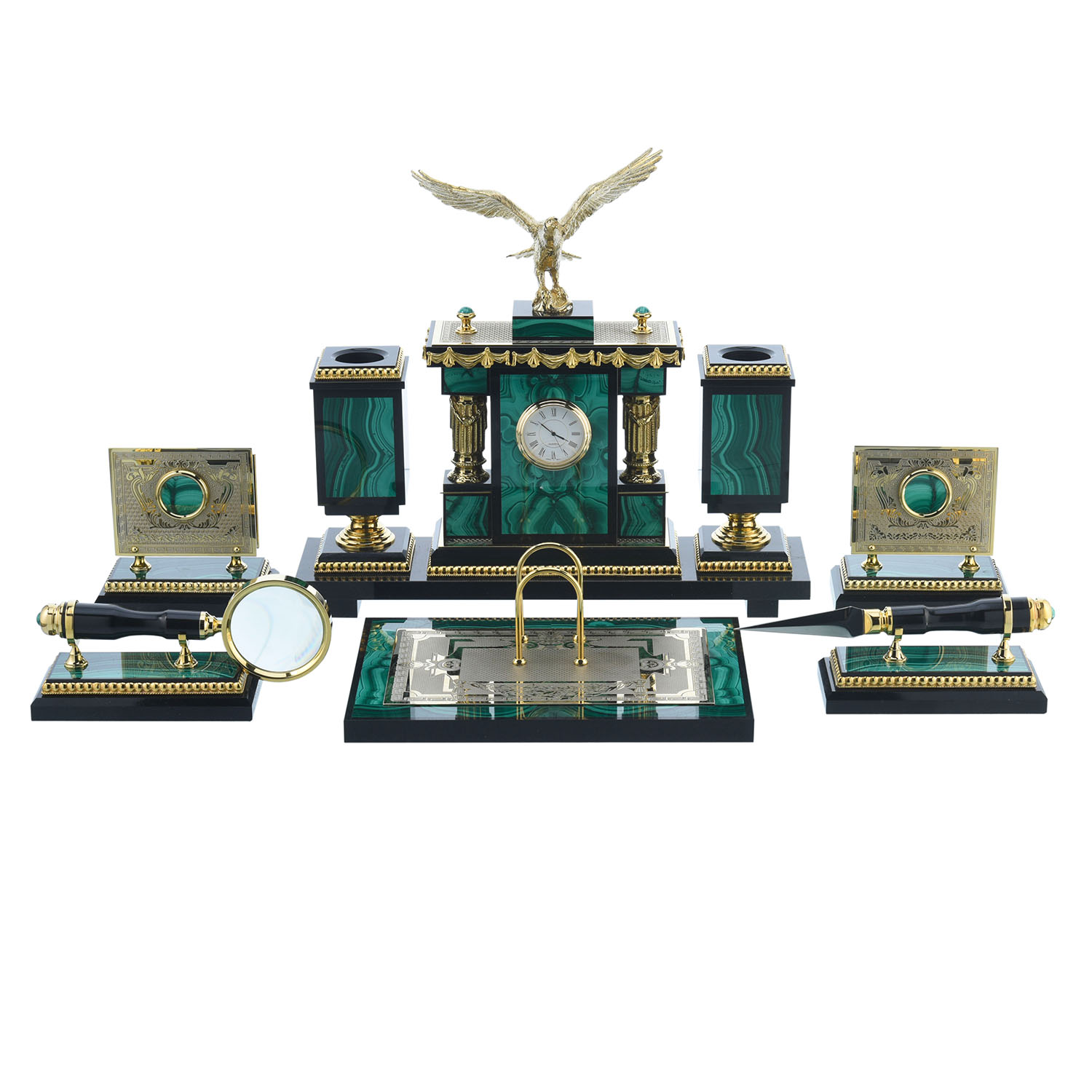 202520 Златоуст настольный Набор офисный Малахитовый "ОРЕЛ" в П/У