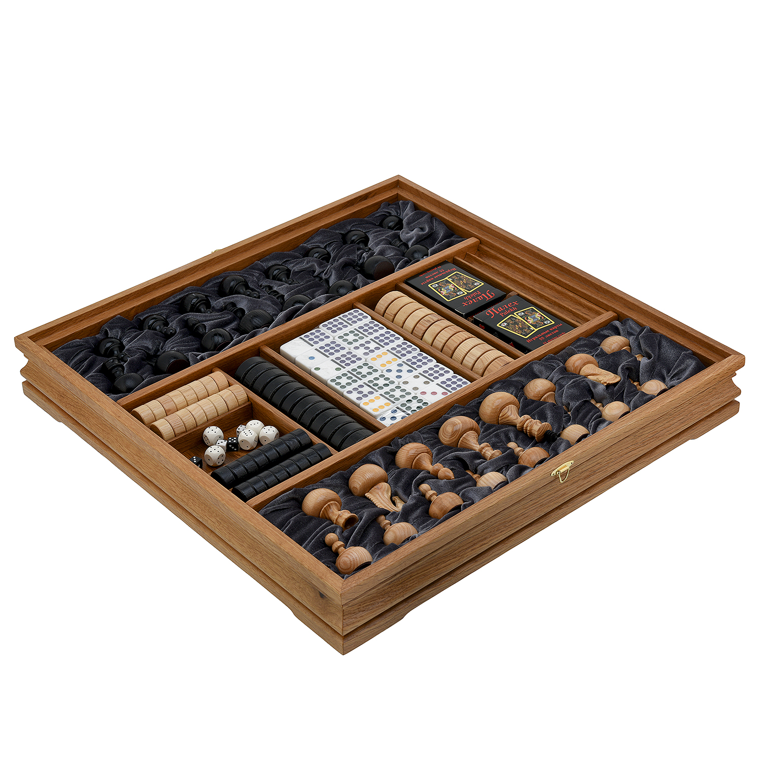 Игровой набор из массива черного дуба (шахматы, нарды, шашки, домино, карты, кости).