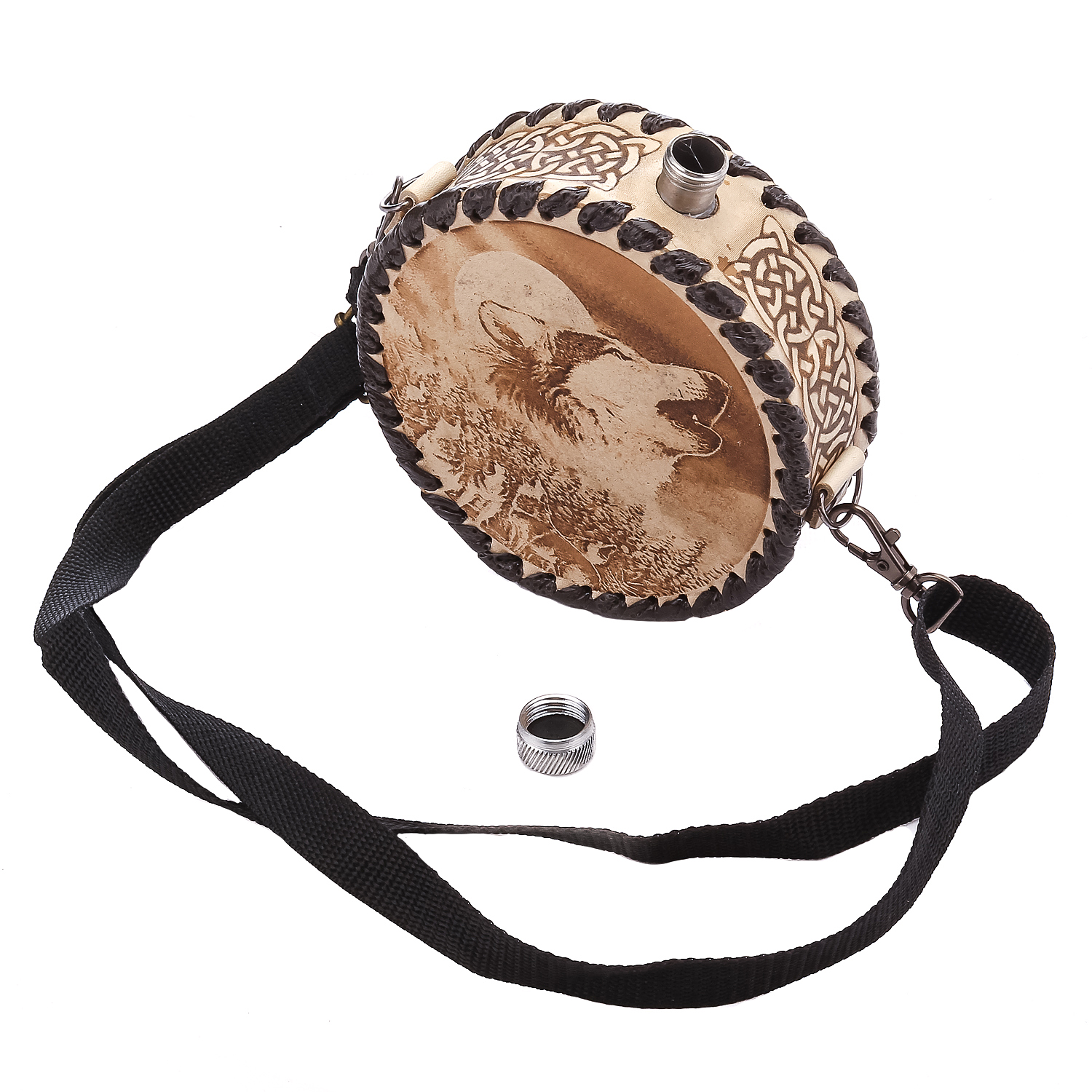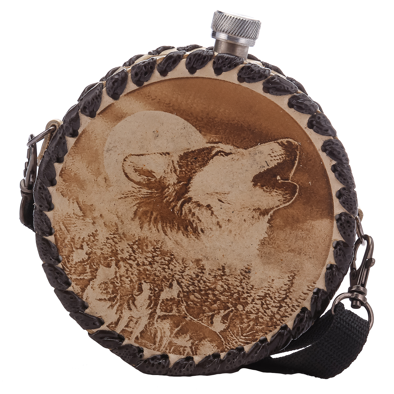 Фляга в кожаном чехле "Волк"