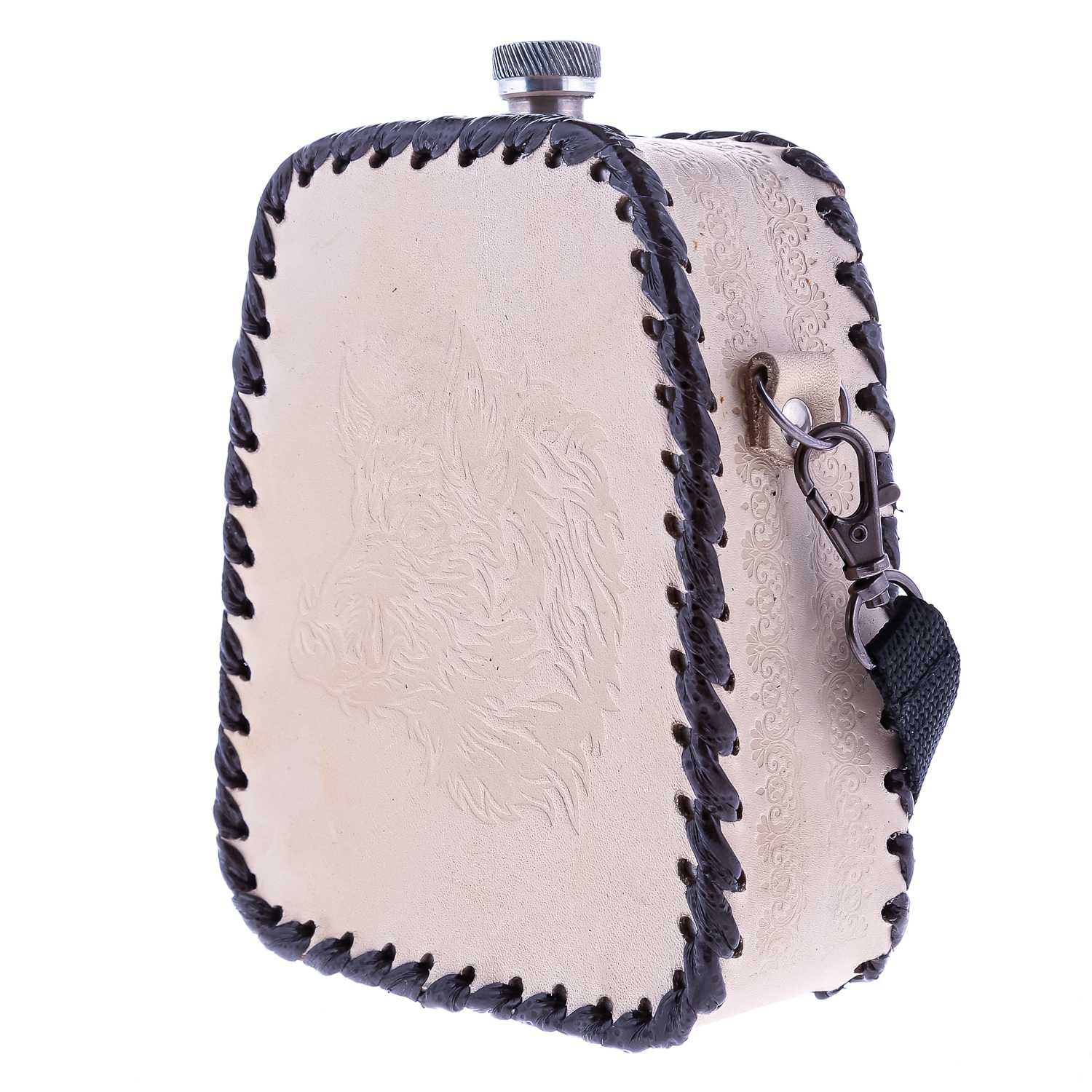 Фляга 1 л в кожаном чехле "Кабан".Материалы: нержавеющая сталь, кожа.