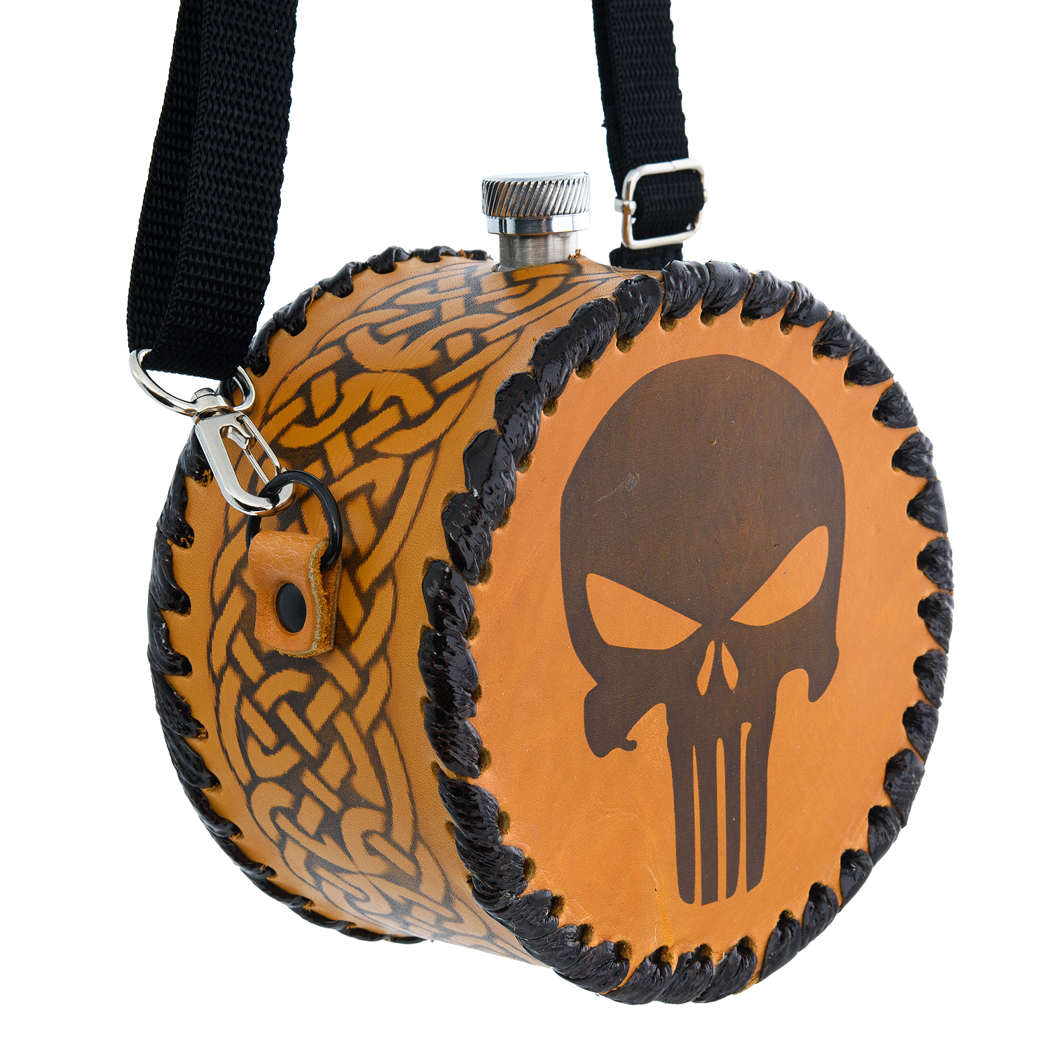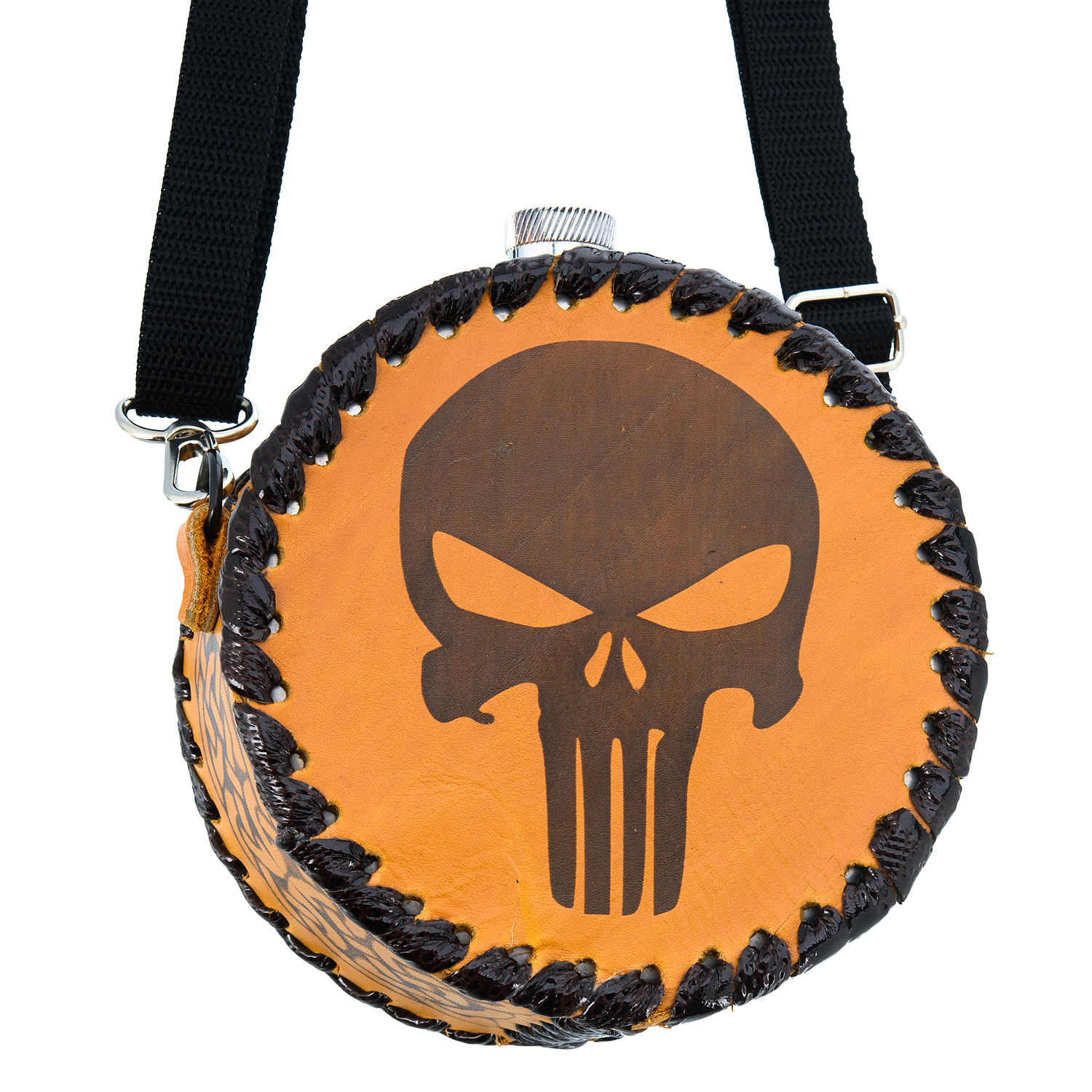Фляга 1 л в кожаном чехле "Череп"