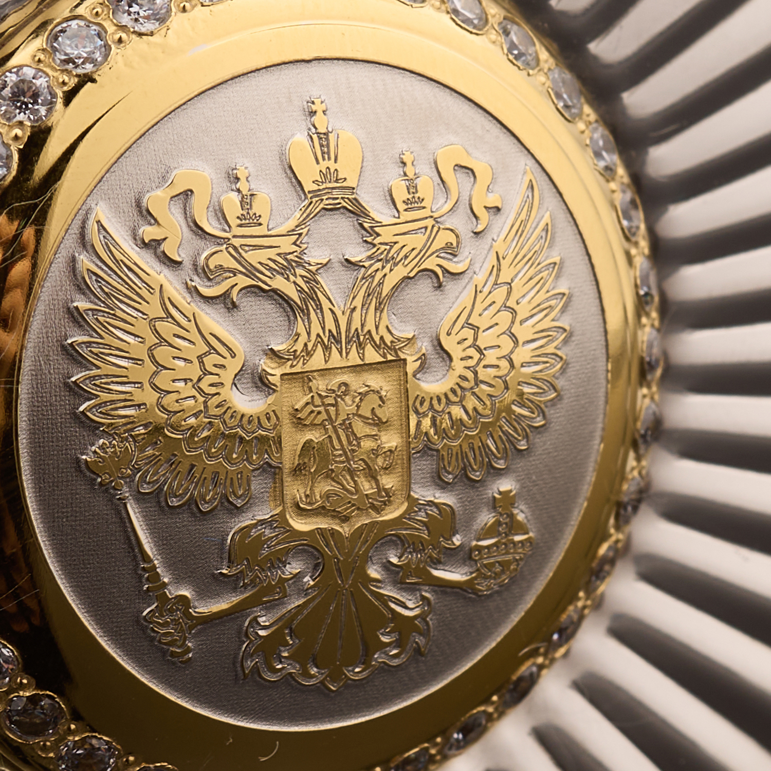 Фляга с позолотой и фианитами "Герб РФ". Златоуст.Материалы: сталь, латунь, золото 999,9*, фианиты.
