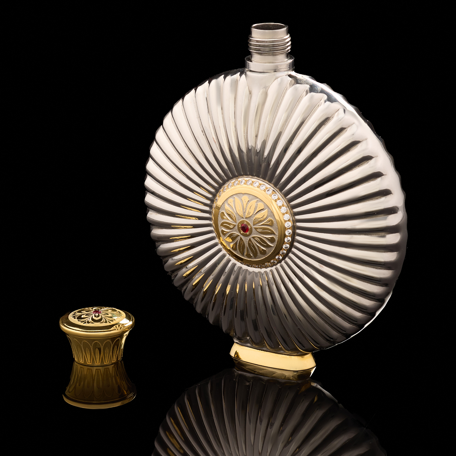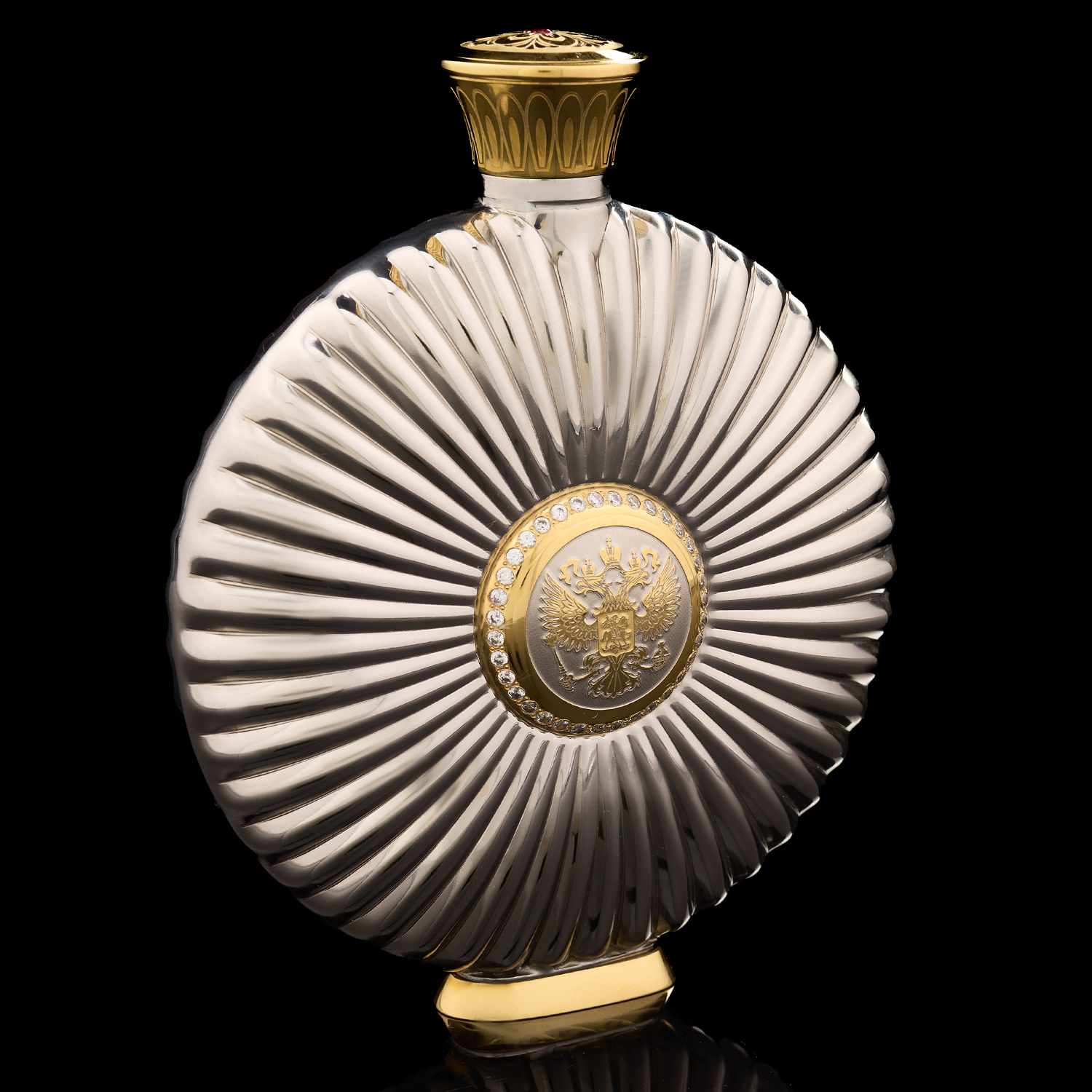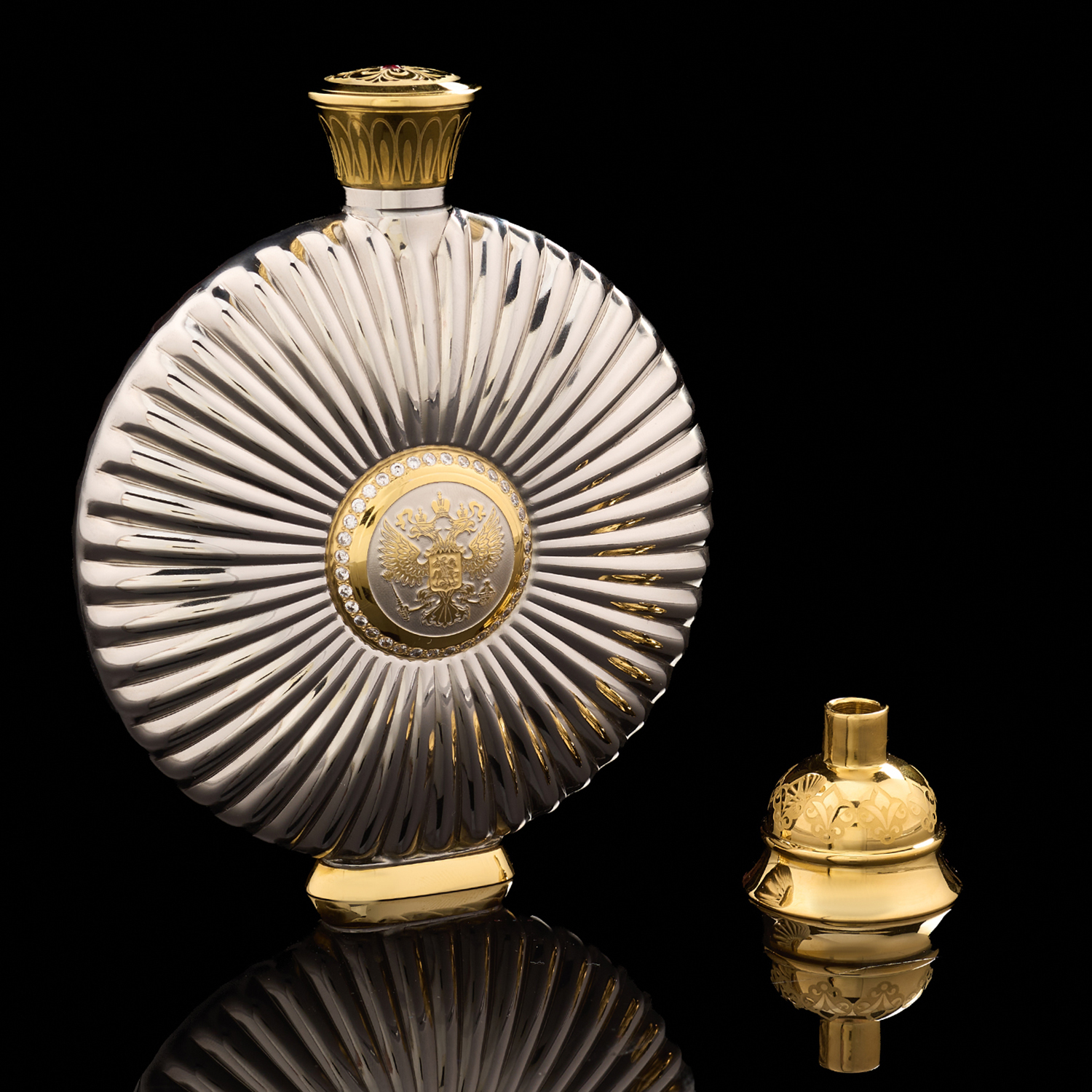Фляга с позолотой и фианитами "Герб РФ". Златоуст