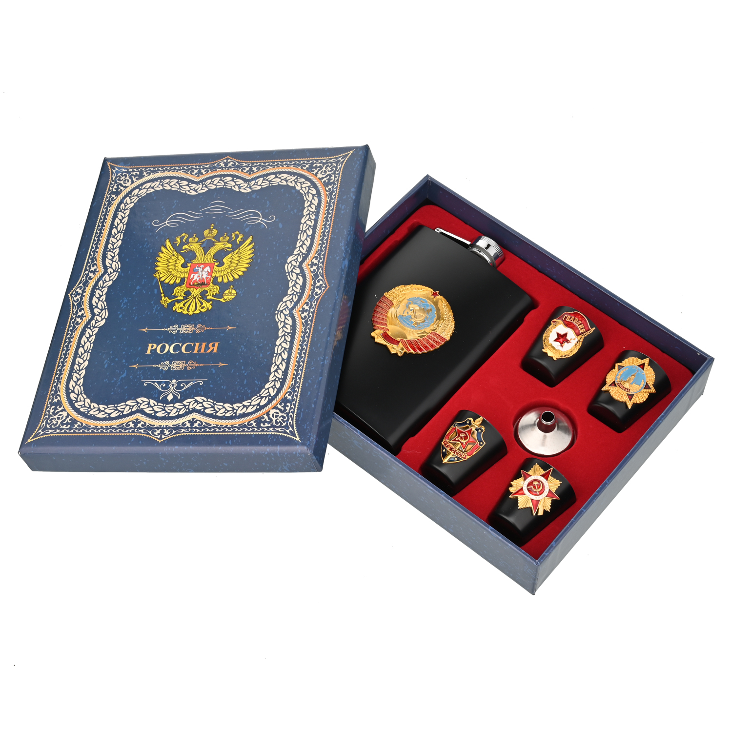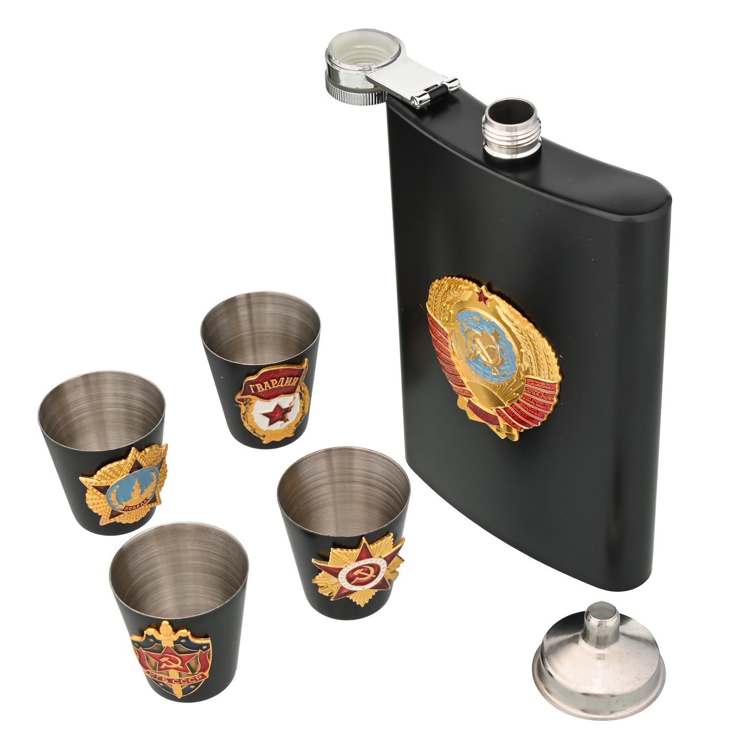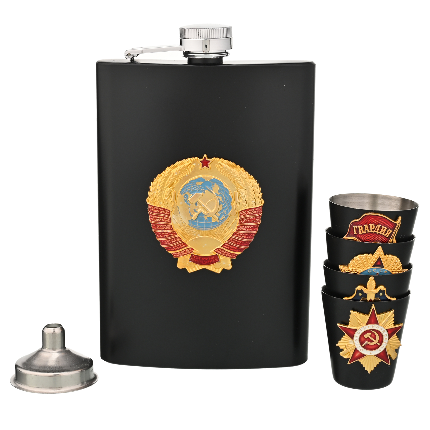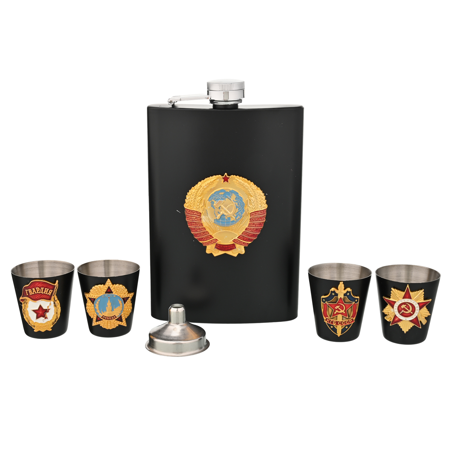 Набор с флягой и стопками "Герб СССР".Материал: металл.