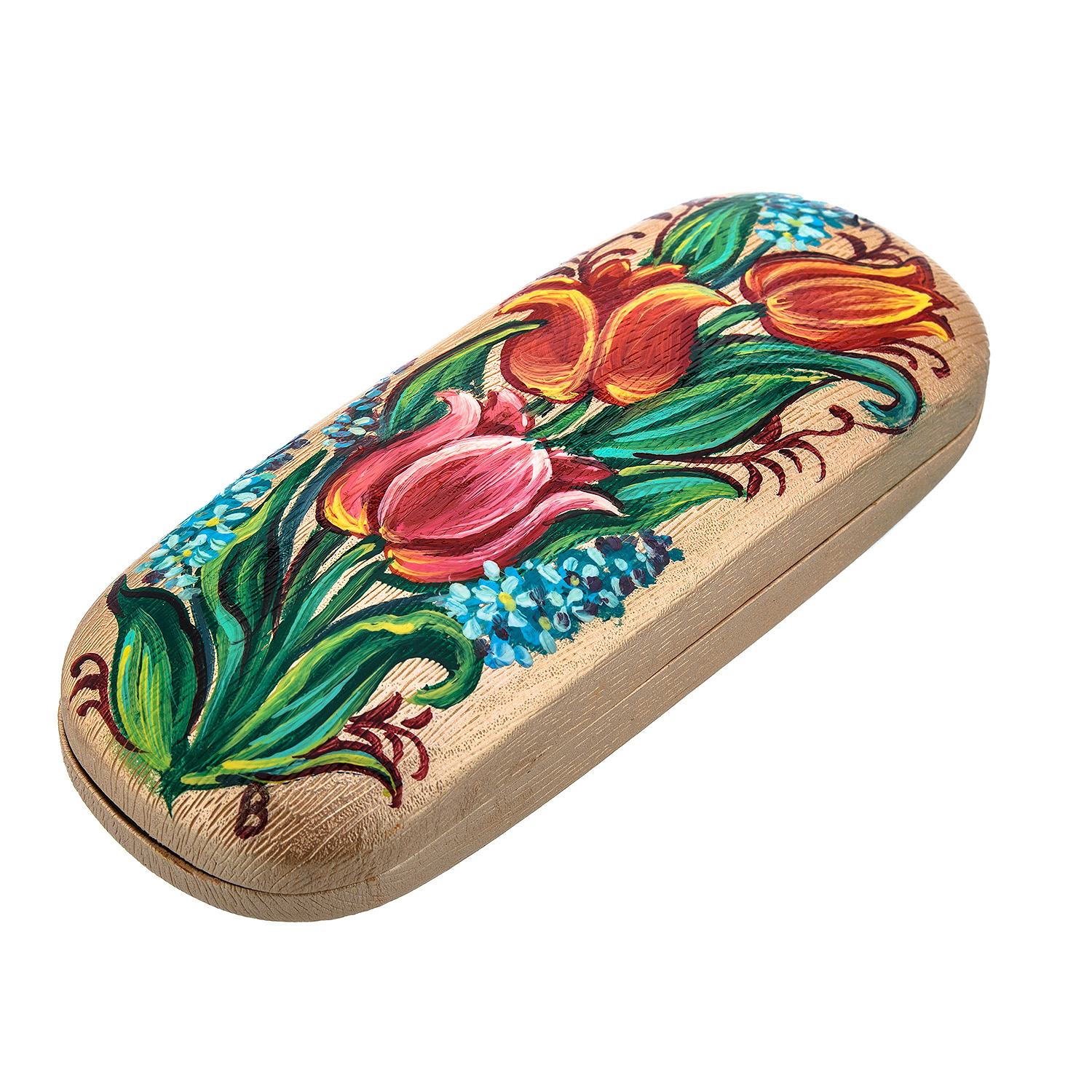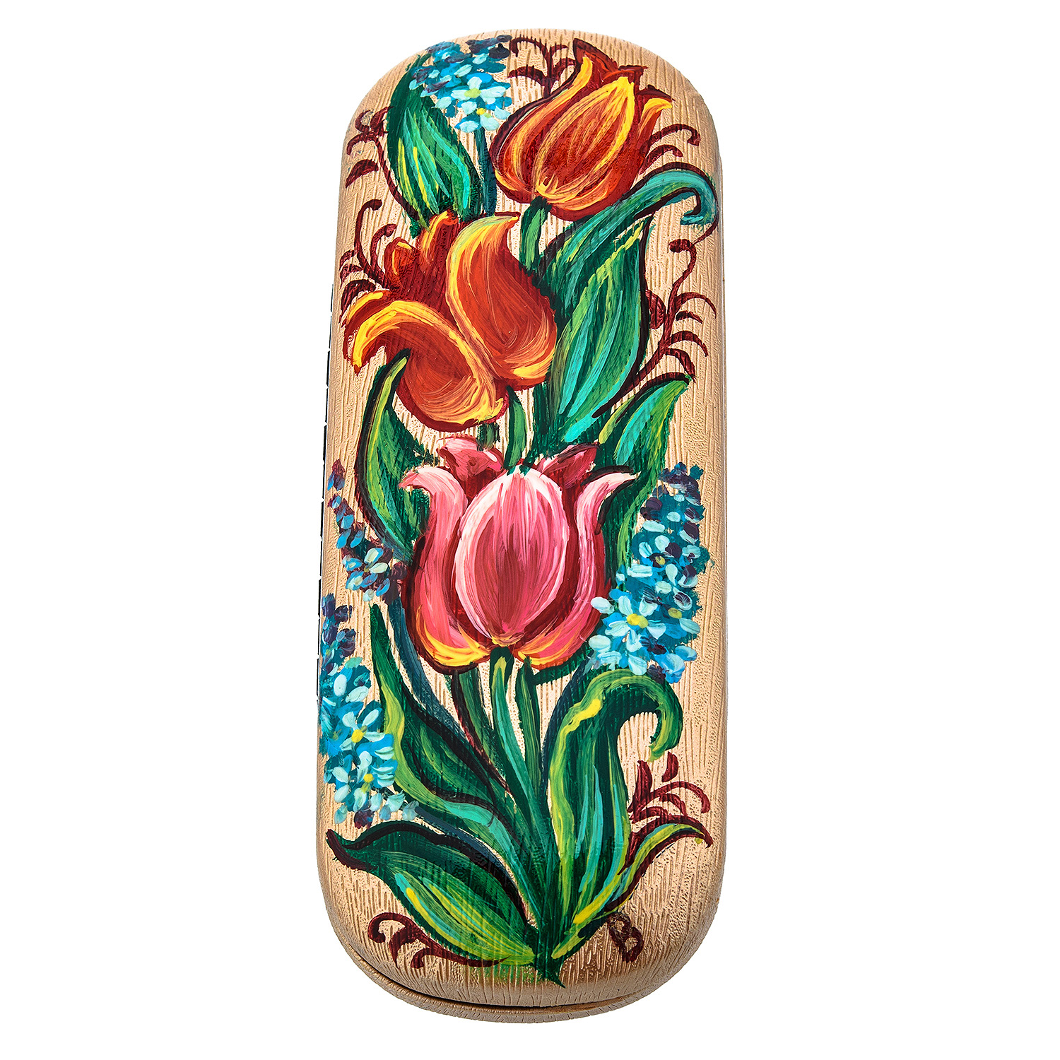 Русские подарки и сувениры → Аксессуары → Футляры для очков → Футляр для очков с ручной росписью "Тюльпаны"