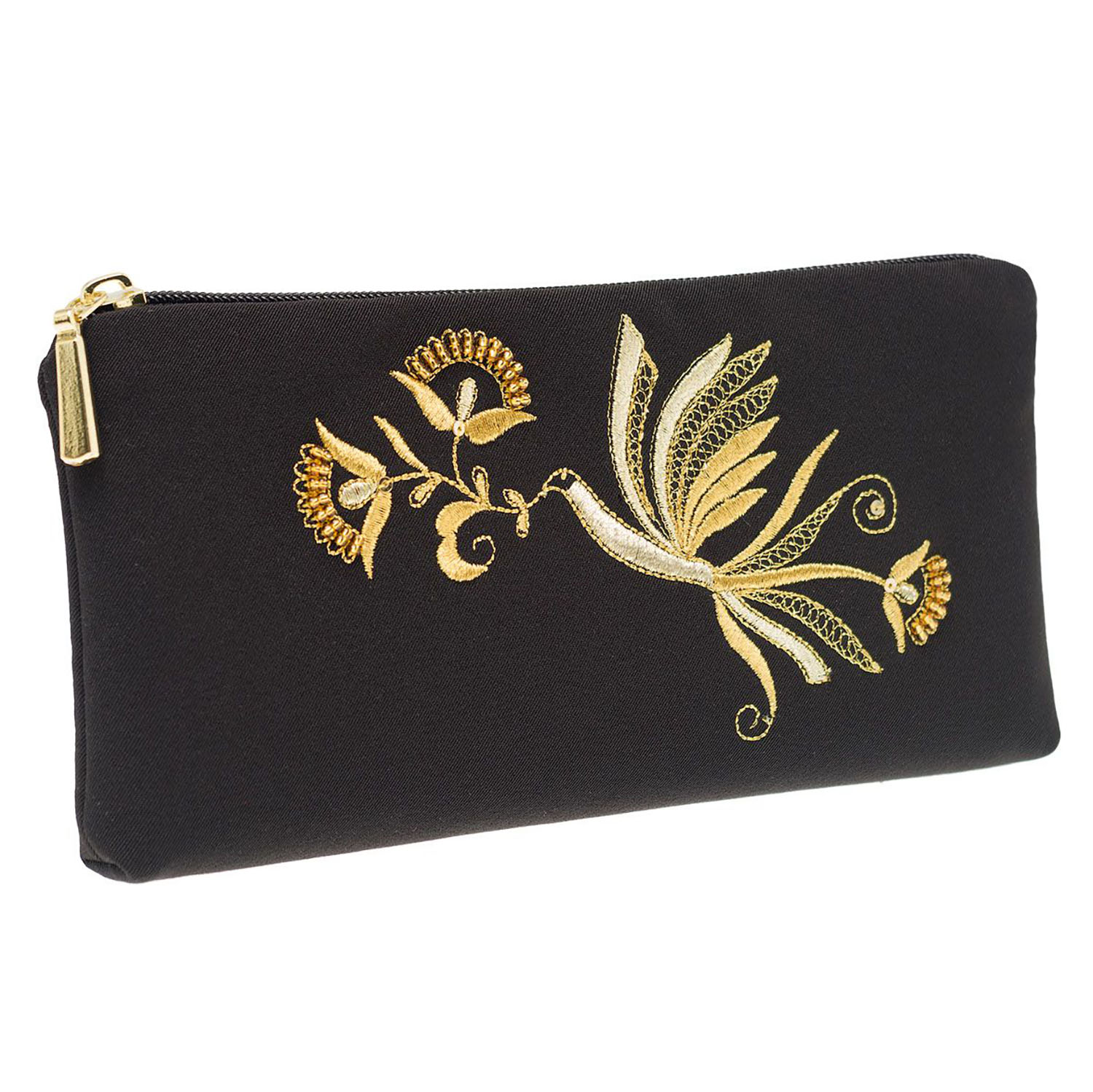 Очечник "Птица". Черный с вышивкой.Материалы: костюмная ткань, полиэстер.
