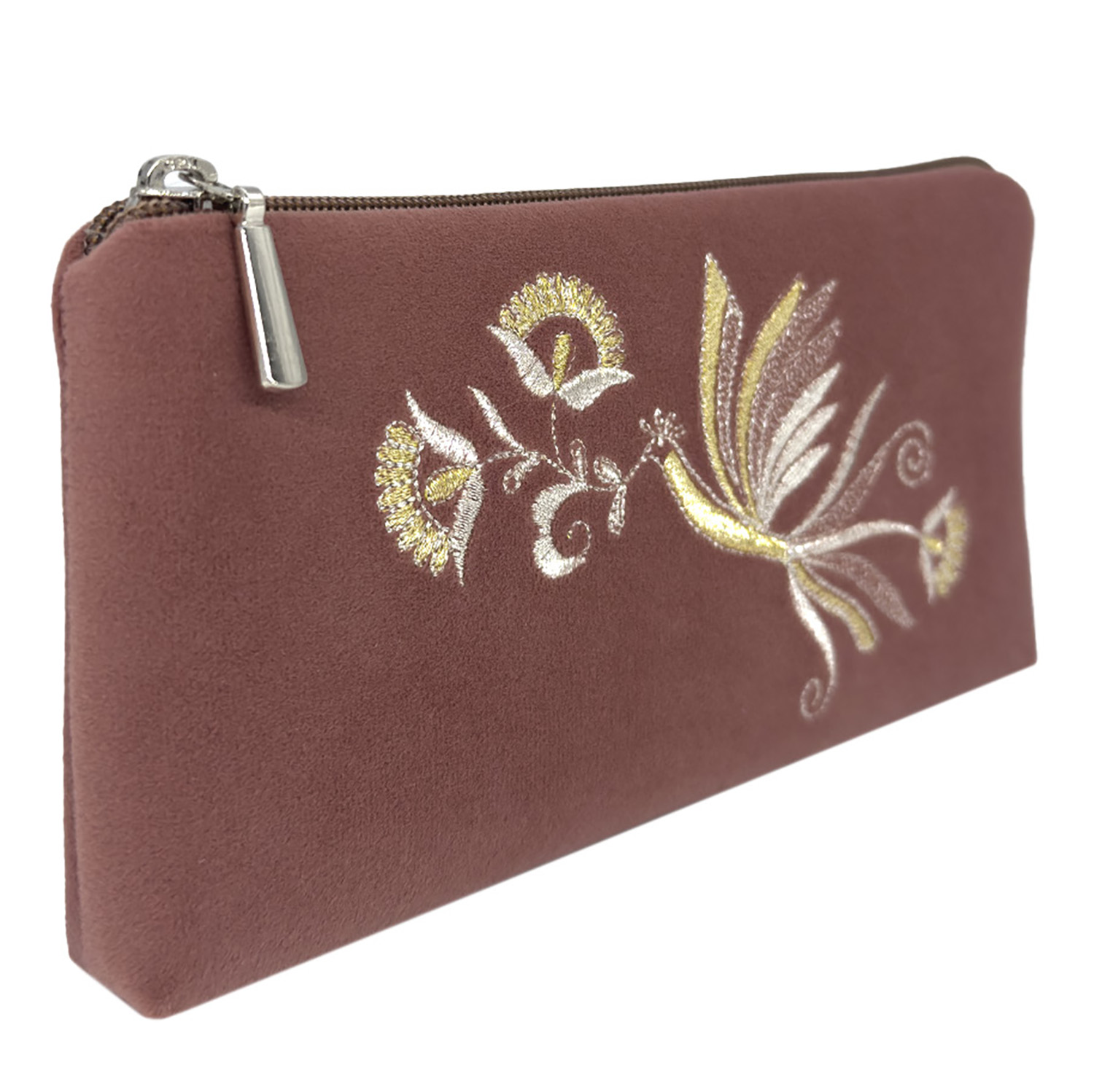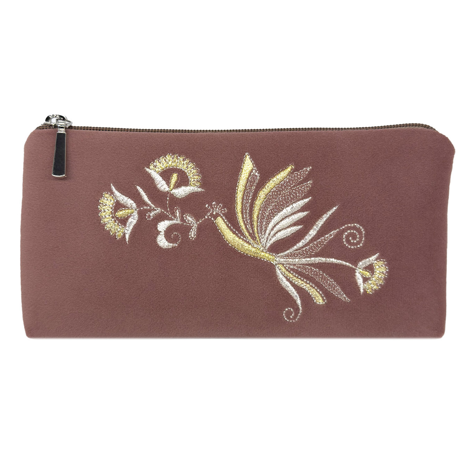 Очечник "Птица". Темно-розовый с вышивкой.Материалы: велюр, полиэстер.