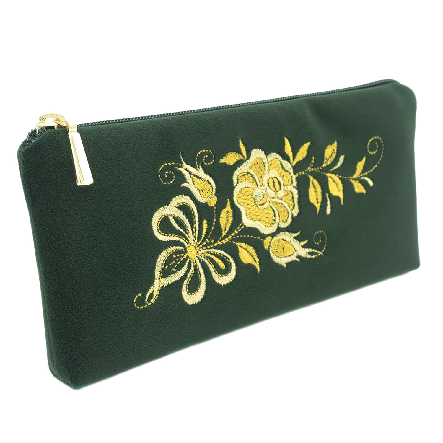 Очечник бархатный с вышивкой "Чайная роза". Темно-зеленый
