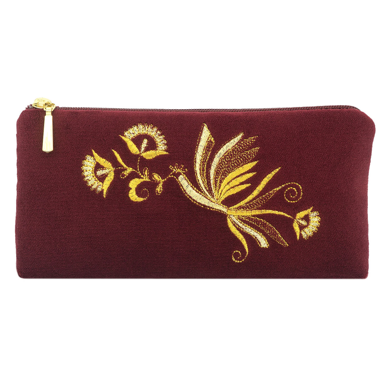 Очечник бархатный с вышивкой "Птица". Бордовый