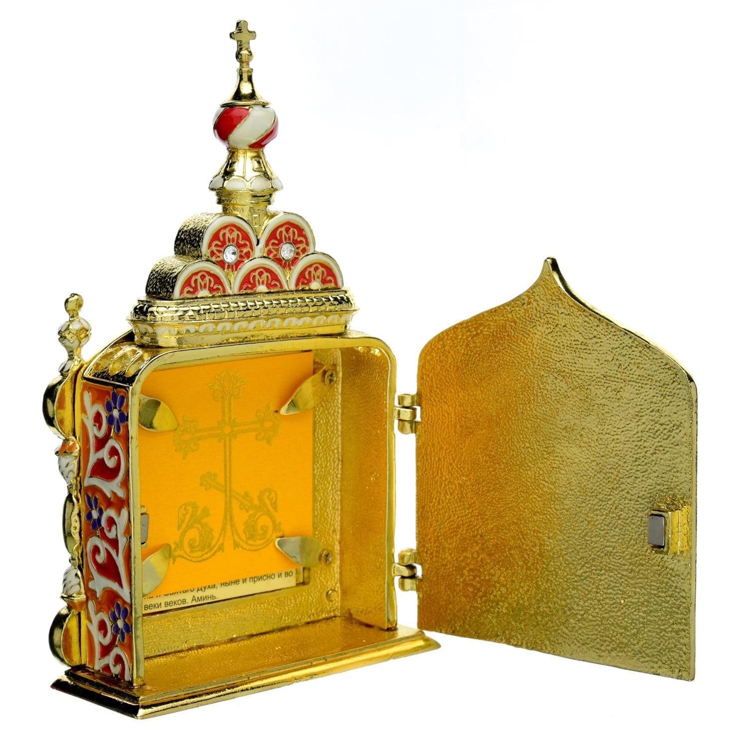 Русские подарки и сувениры → Религиозные подарки → Иконы → Киот малый "Господь Вседержитель". Традиции Фаберже 8 х 14 см