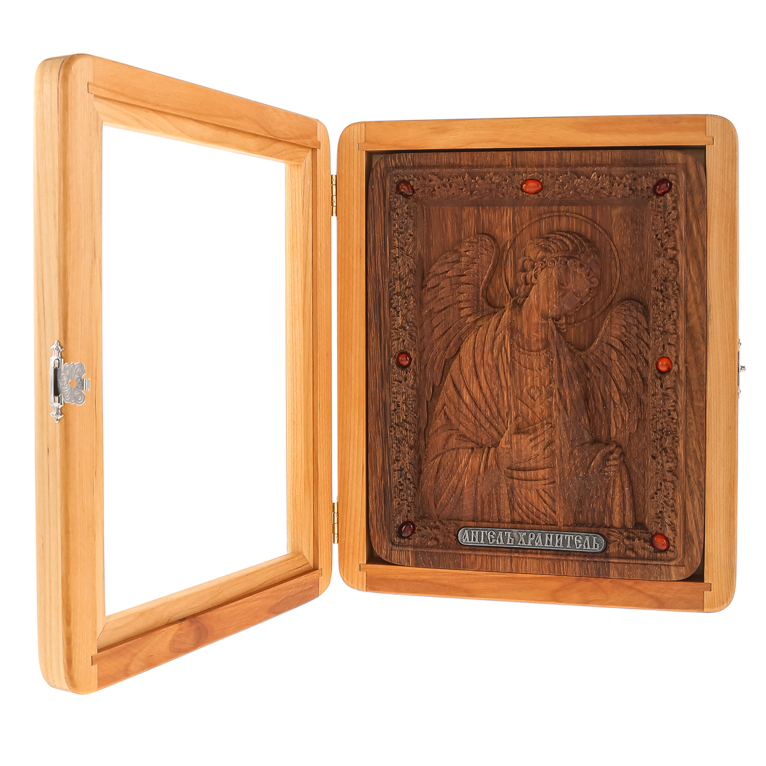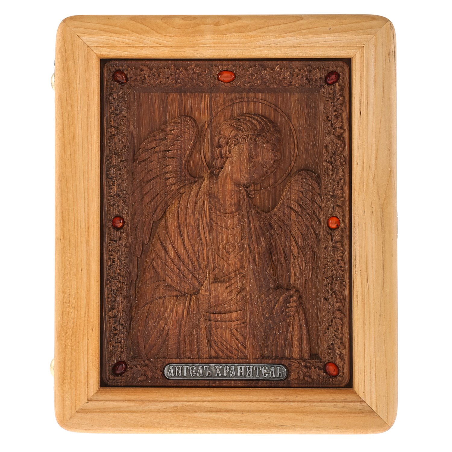 0036009/26*21см Икона подарочная резная КИОТ (береза) "Ангел Хранитель" мор. дуб RAR-291.М