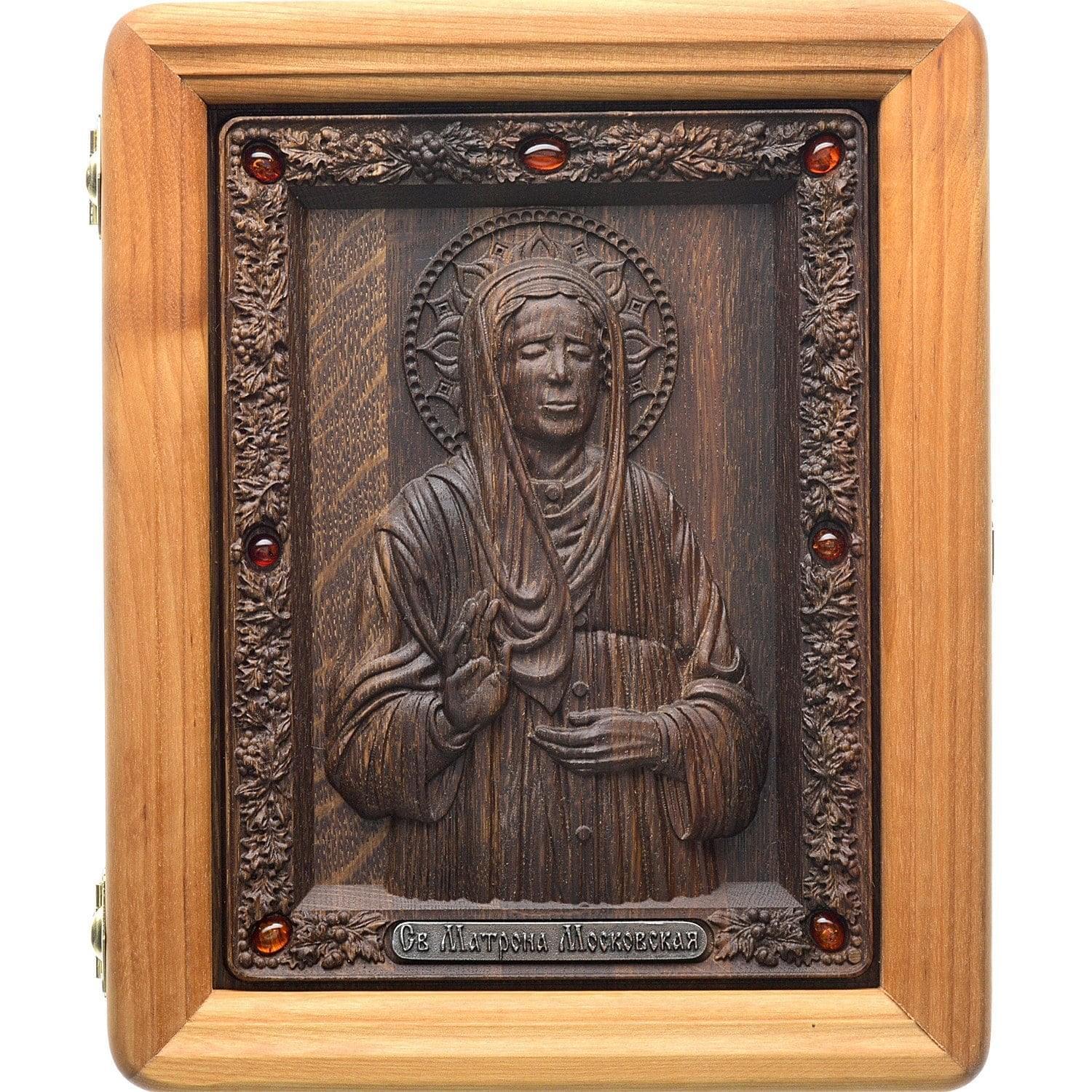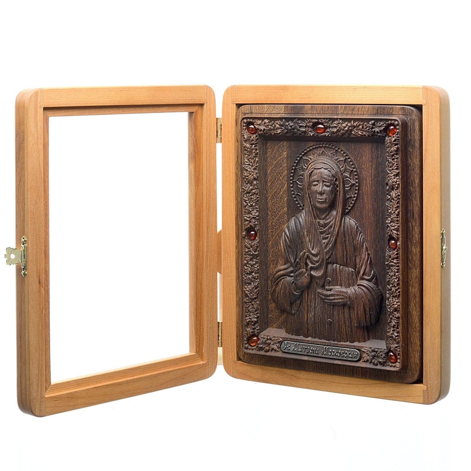 0040755/RAR-245.m/26*21см Икона в КИОТЕ подарочная"Бл.ст.Матрона Московская" мореный дуб/береза .