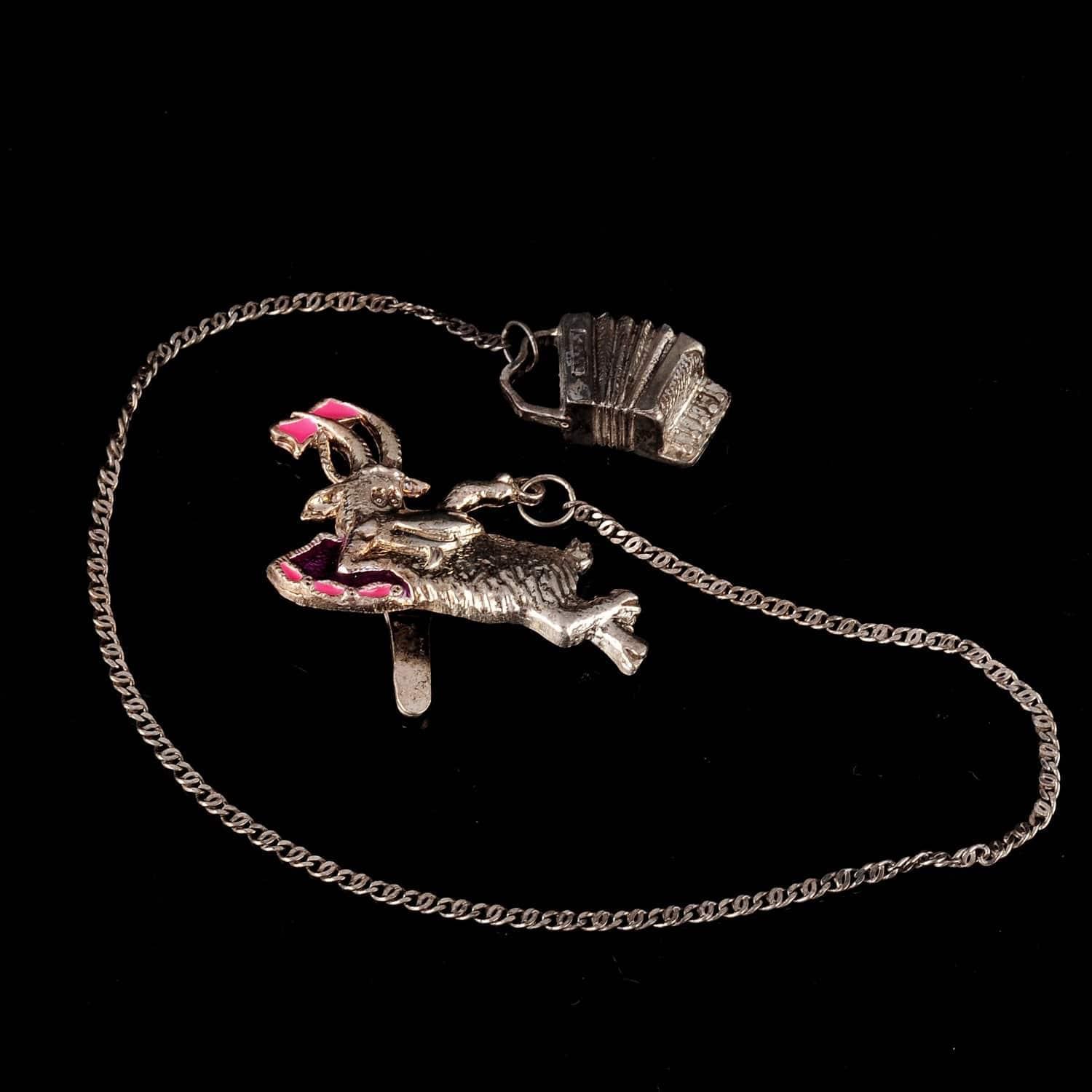 0019583 Серебро 925* ИОНИЗАТОР "Коза с баяном" с эмалью 748ИЗ00807