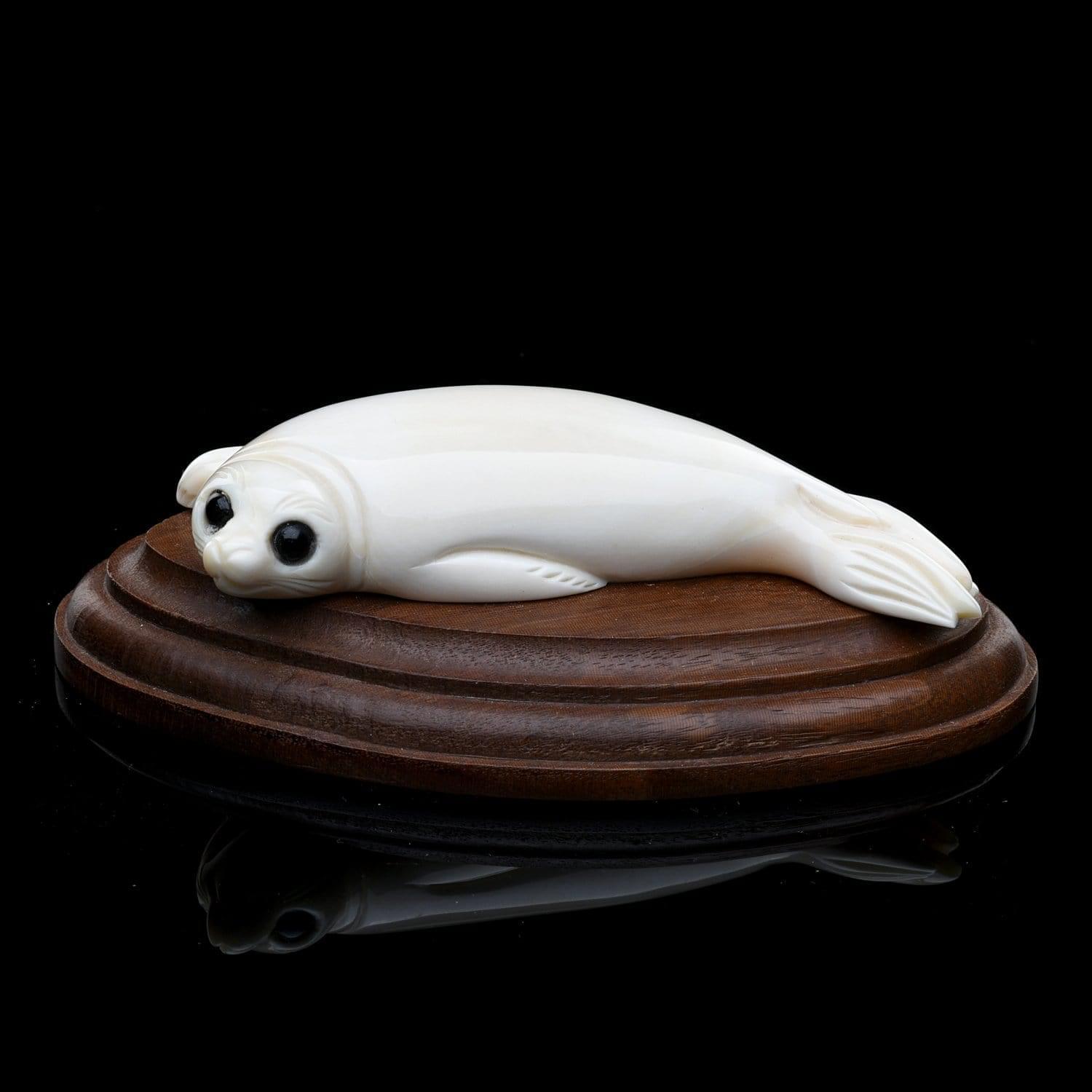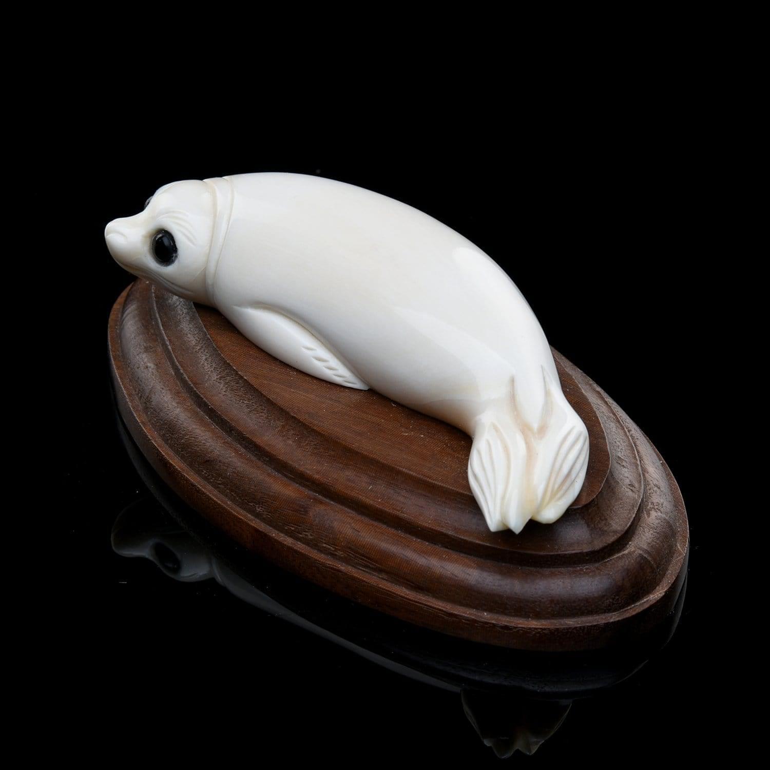 0027499/В263 Изделия из кости Скульптура "Нерпа"Зуб кашалота, дерево, оникс .