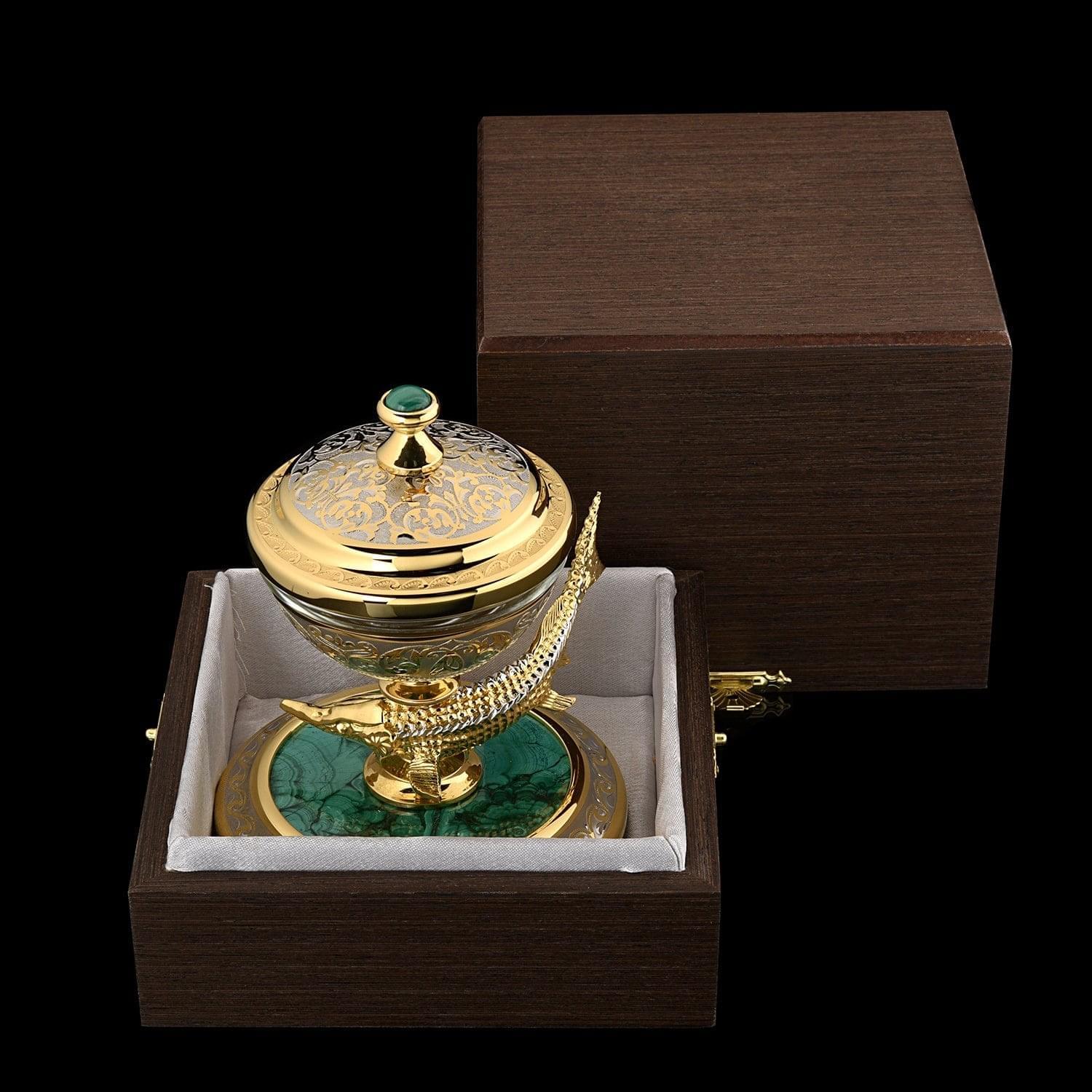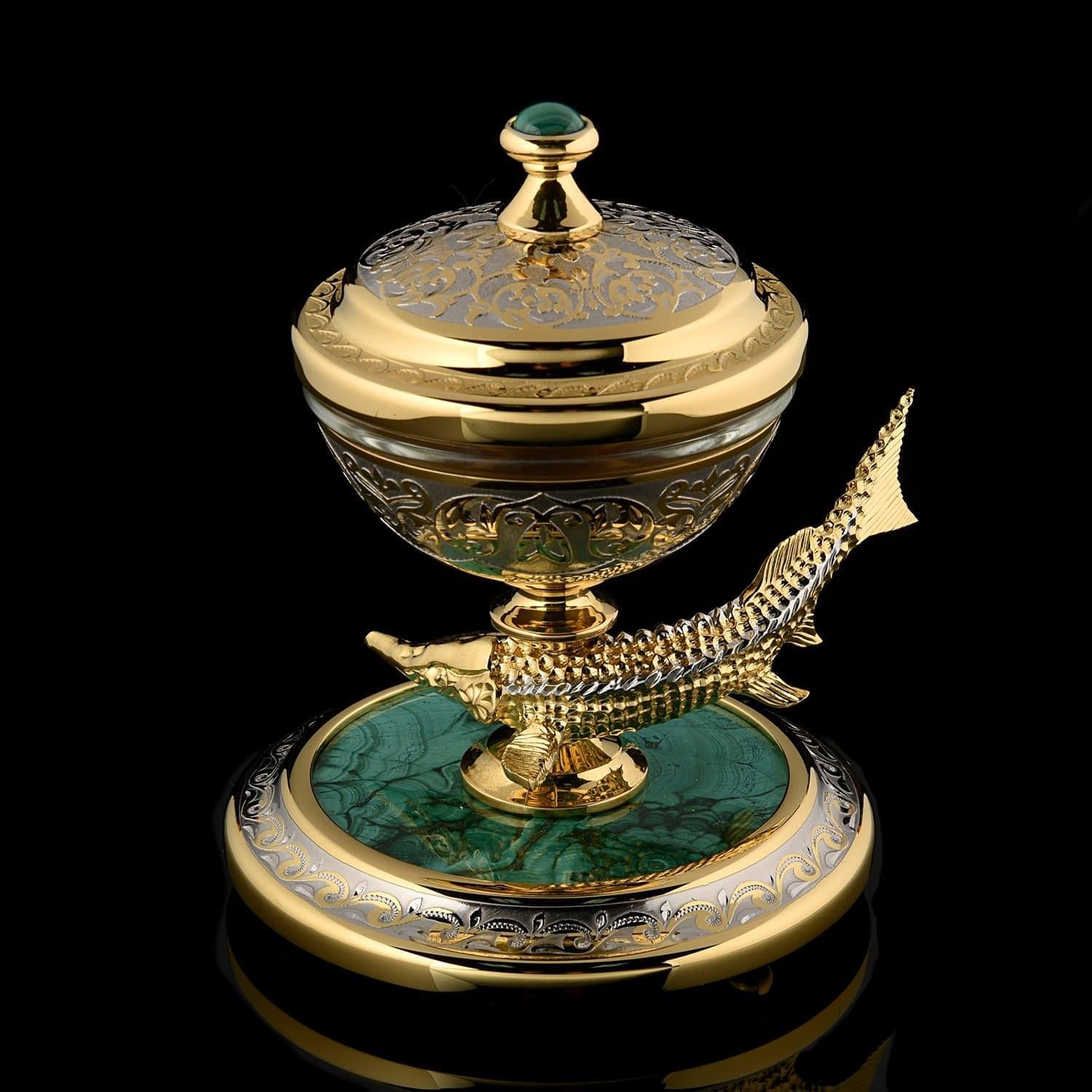 Златоуст Икорница "Осетр"малахит, 100*100*130мм 2100гр 118678 ...
