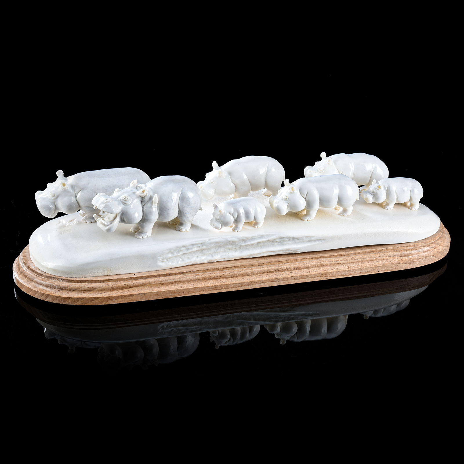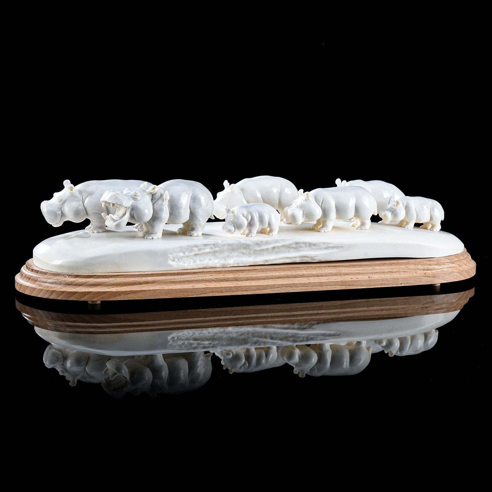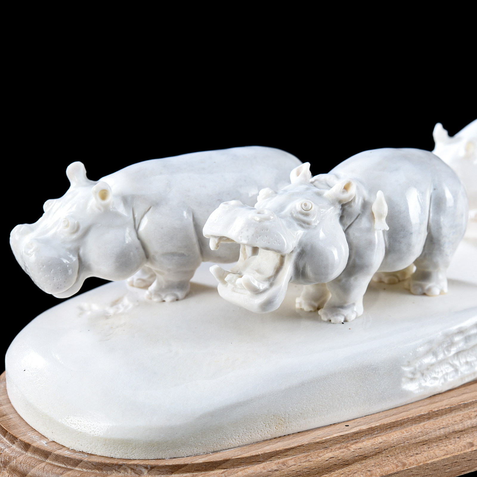 Скульптура из рога лося "Семья бегемотов".Материалы: рог лося, дерево.