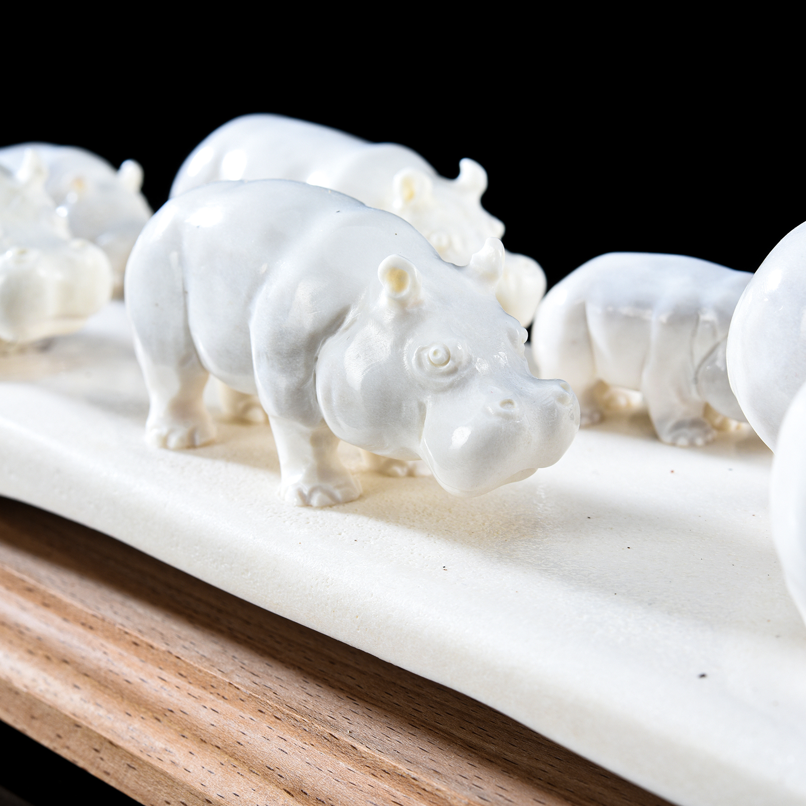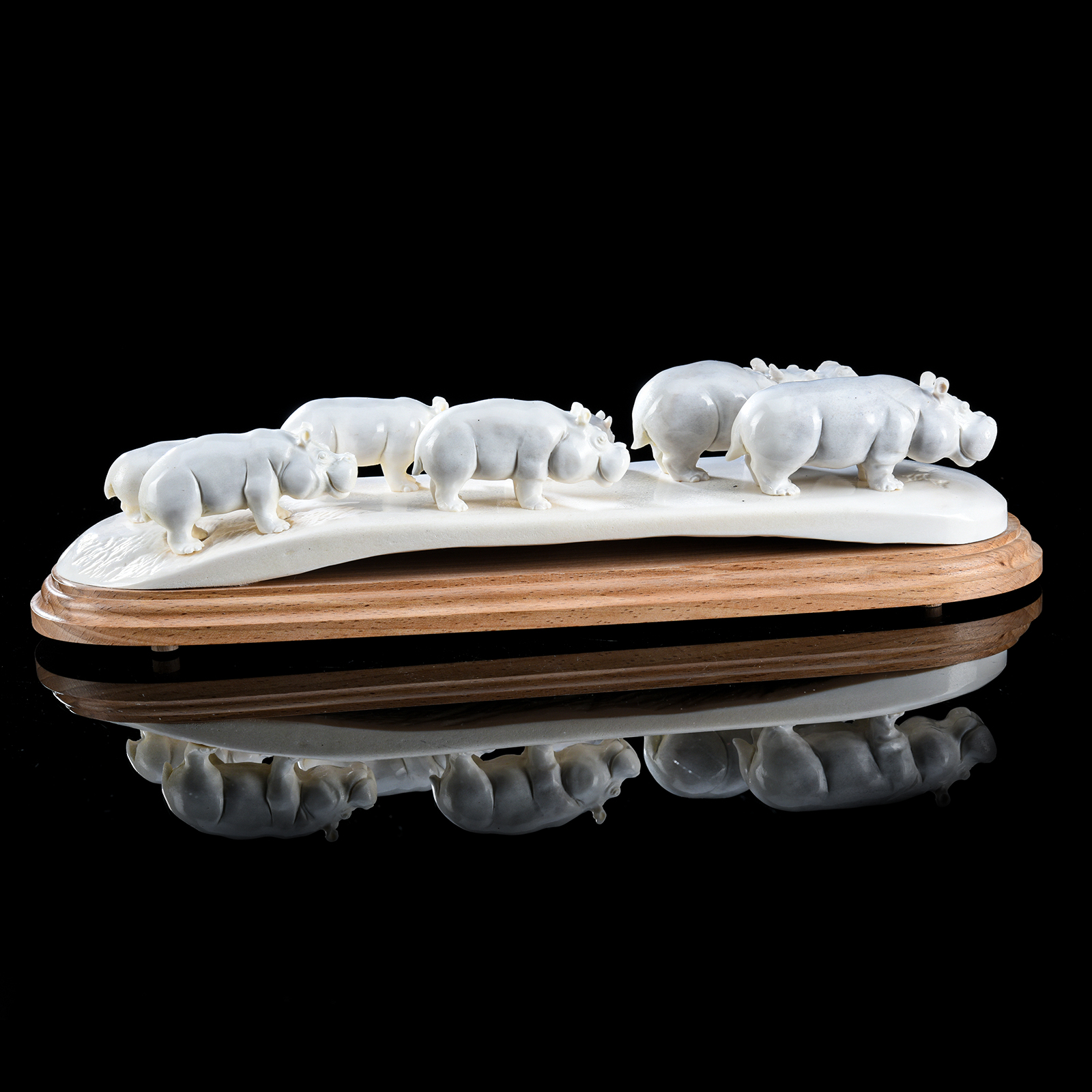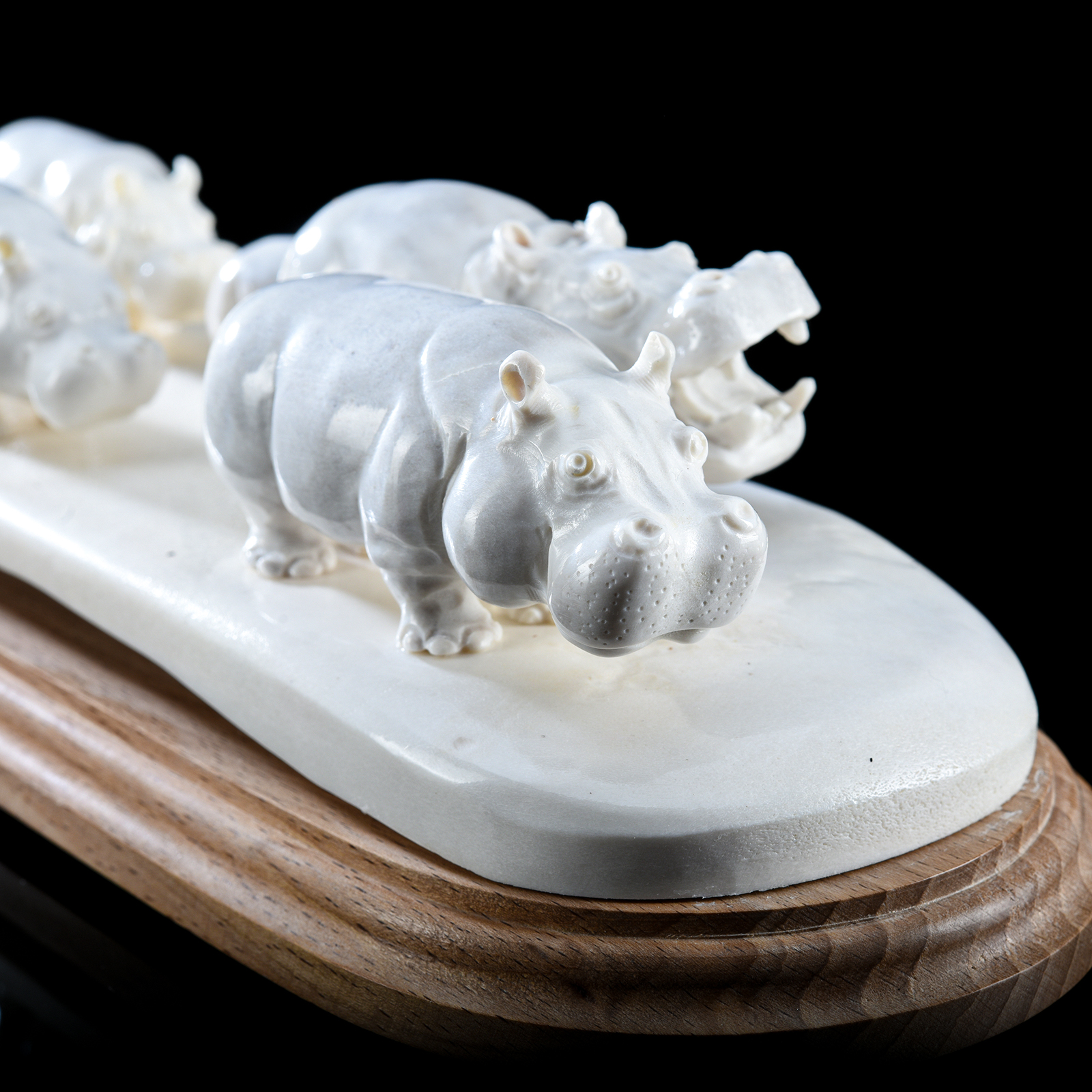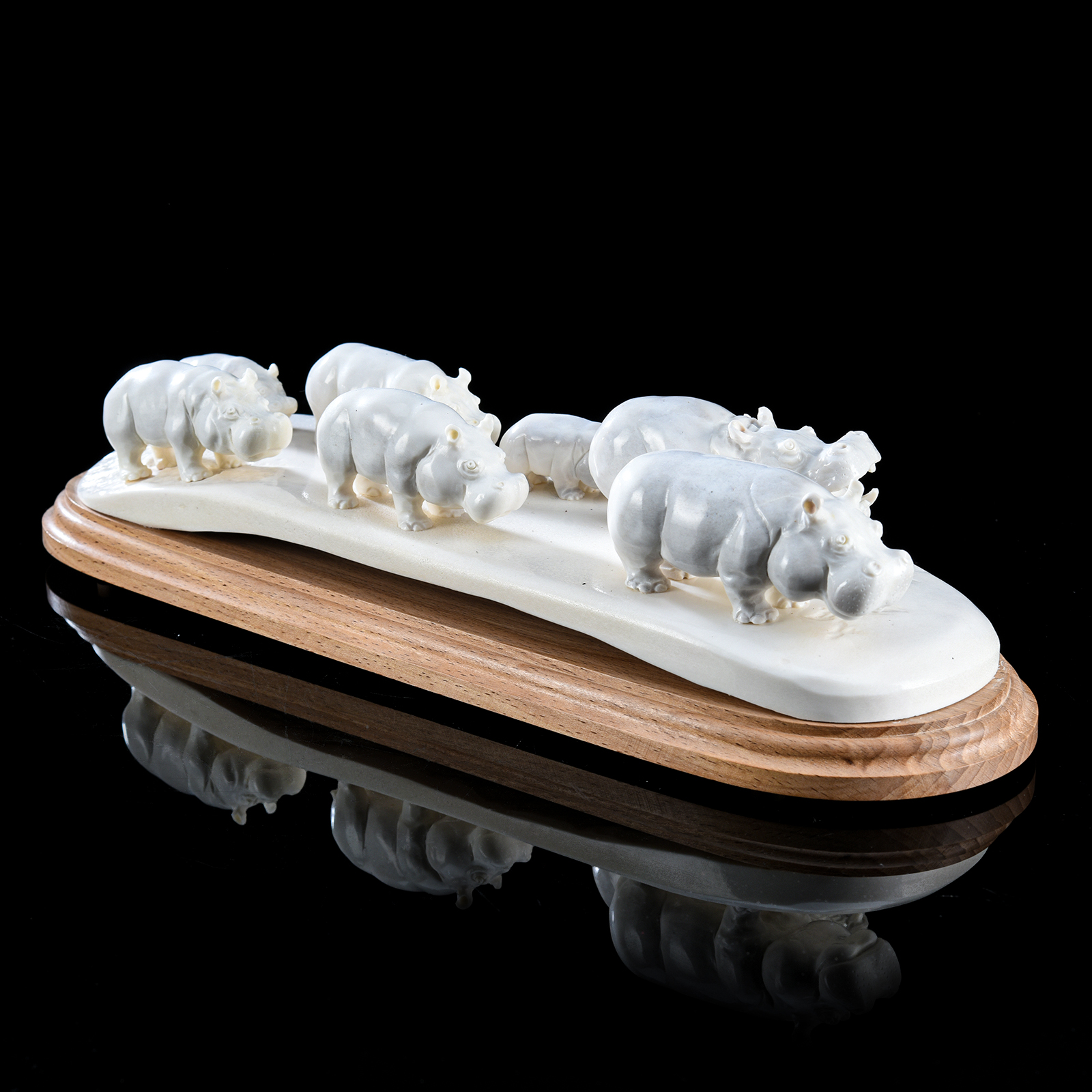 Скульптура из рога лося "Семья бегемотов".Материалы: рог лося, дерево.