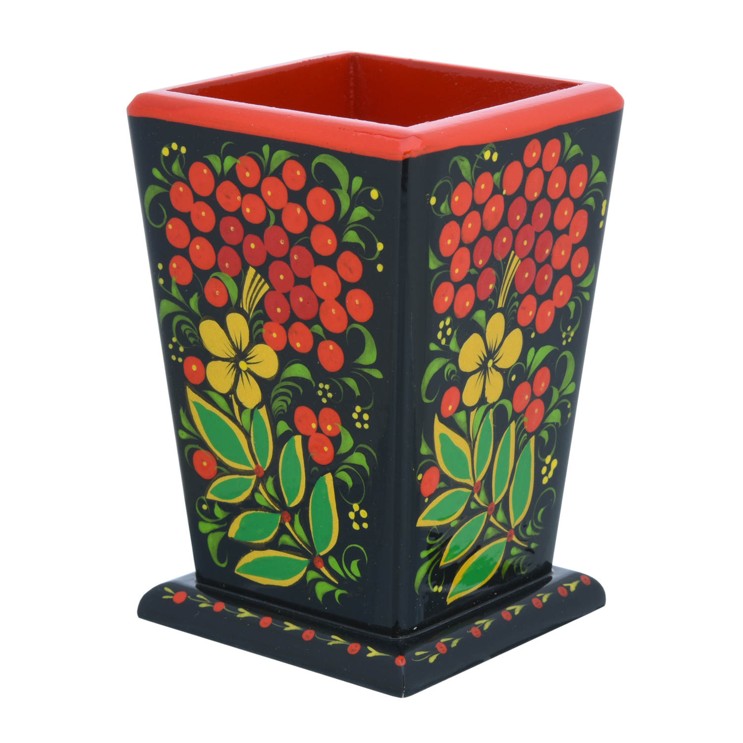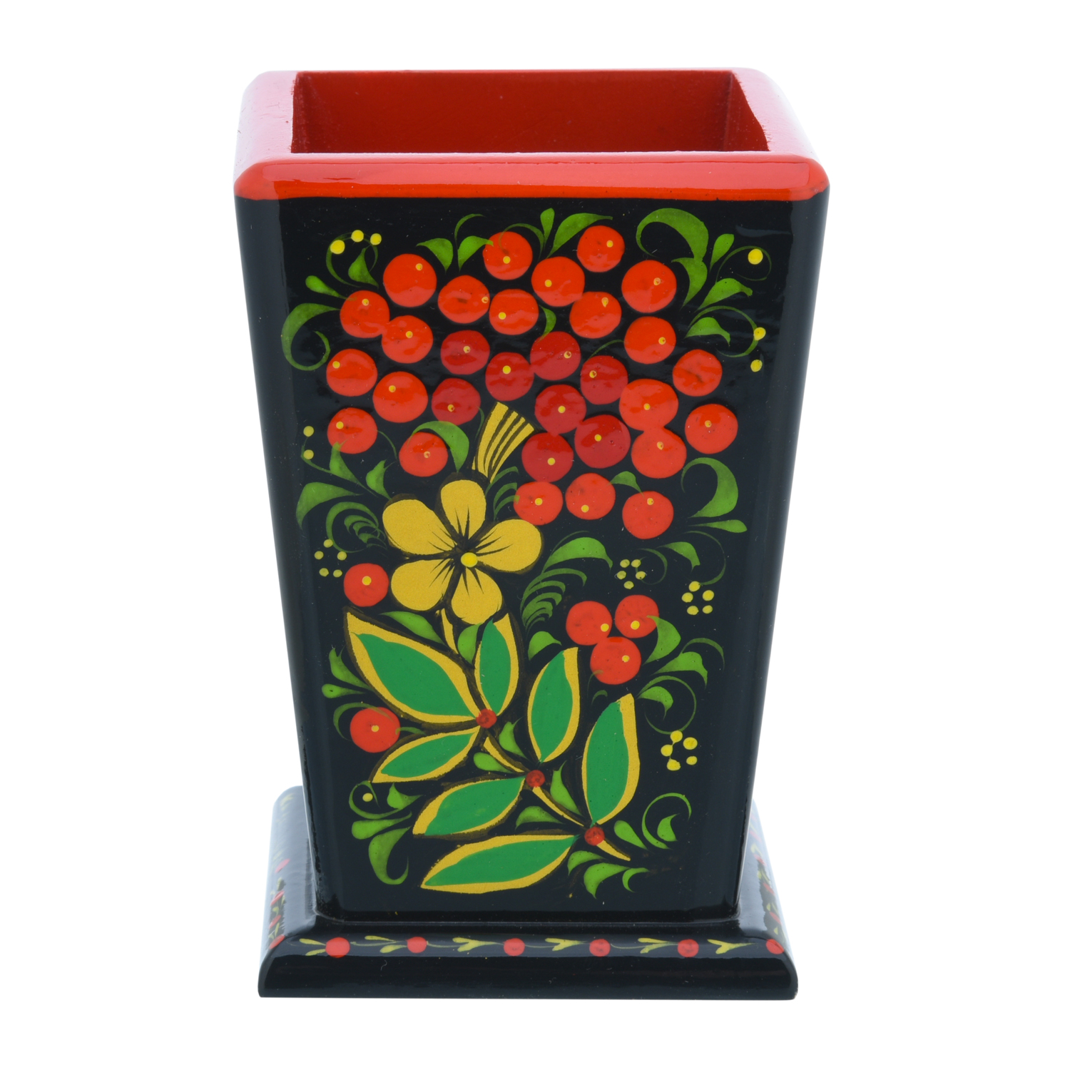 Карандашница "Рябина". Хохлома.Материалы: дерево, краски, лак.