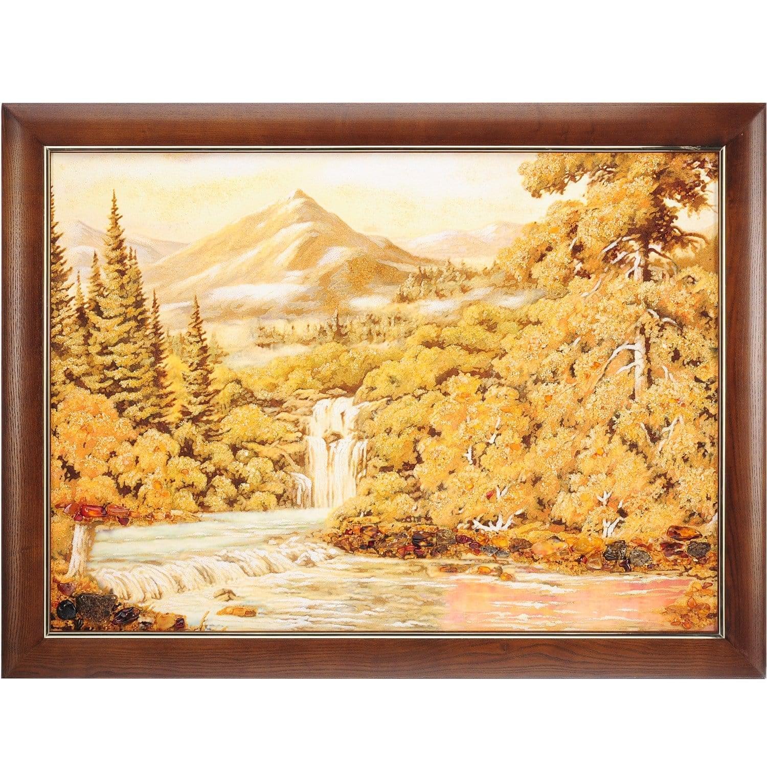 Картина из янтаря с пейзажем и открытой перспективой - это то, что Вы давно искали. Интерьерный аксессуар подходит для украшения стены гостиной, залы. Эксклюзивная авторская работа, картина янтарная "Пейзаж с водопадом №2" - это универсальный вариант vip-подарка на Свадьбу, День рождения, Юбилей, личный или общий, в том числе профессиональный праздник.