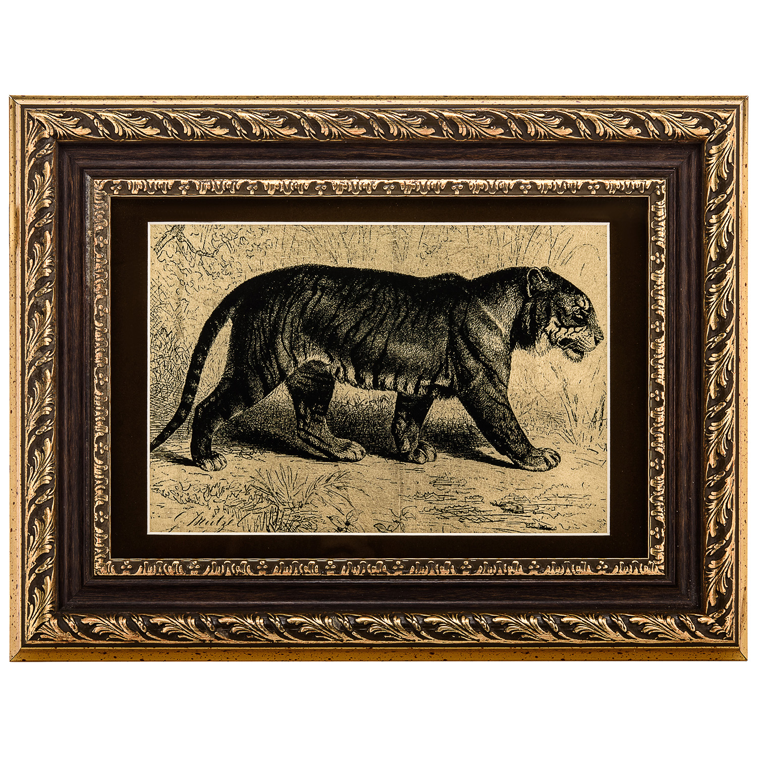Русские подарки и сувениры → Интерьерные изделия → Картины → Картина "Тигр". Сусальное золото 45х35 см