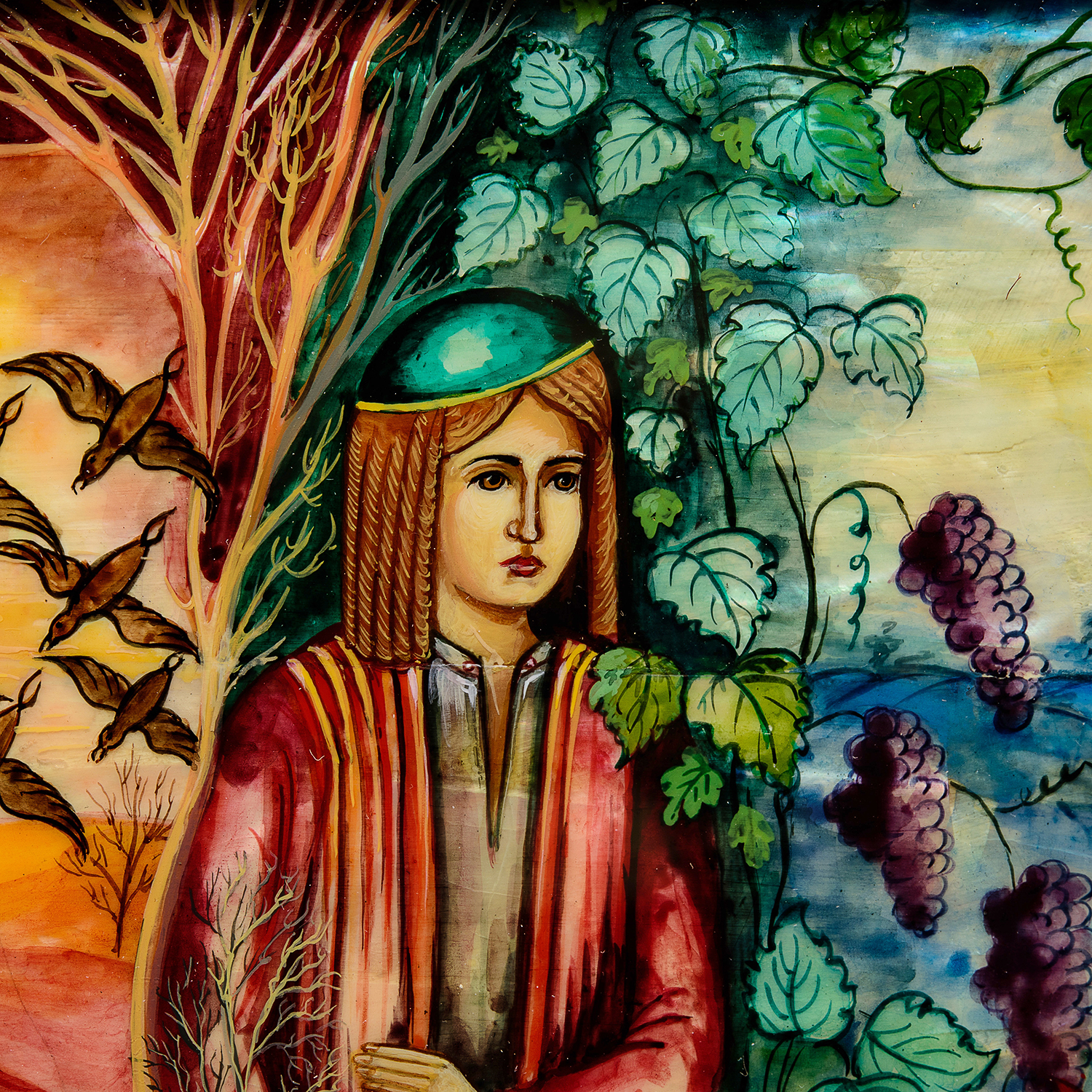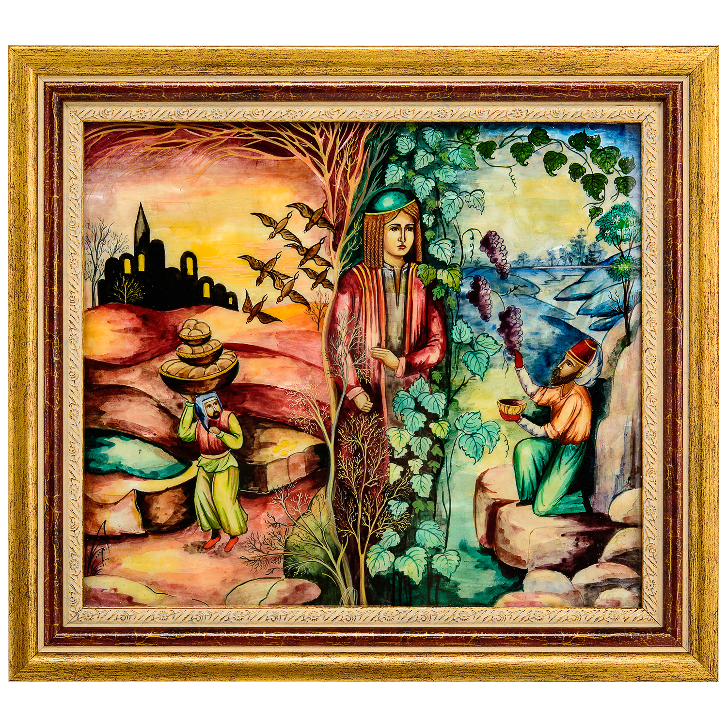 Материалы: перламутр, краски, стекло, деревянный багет.