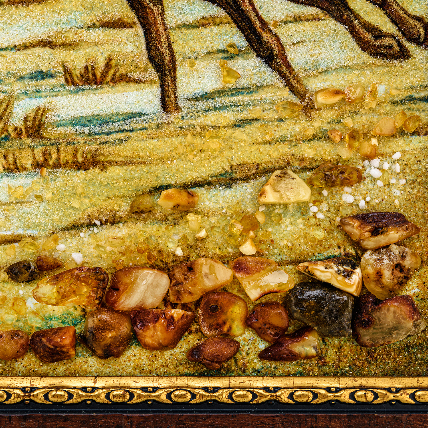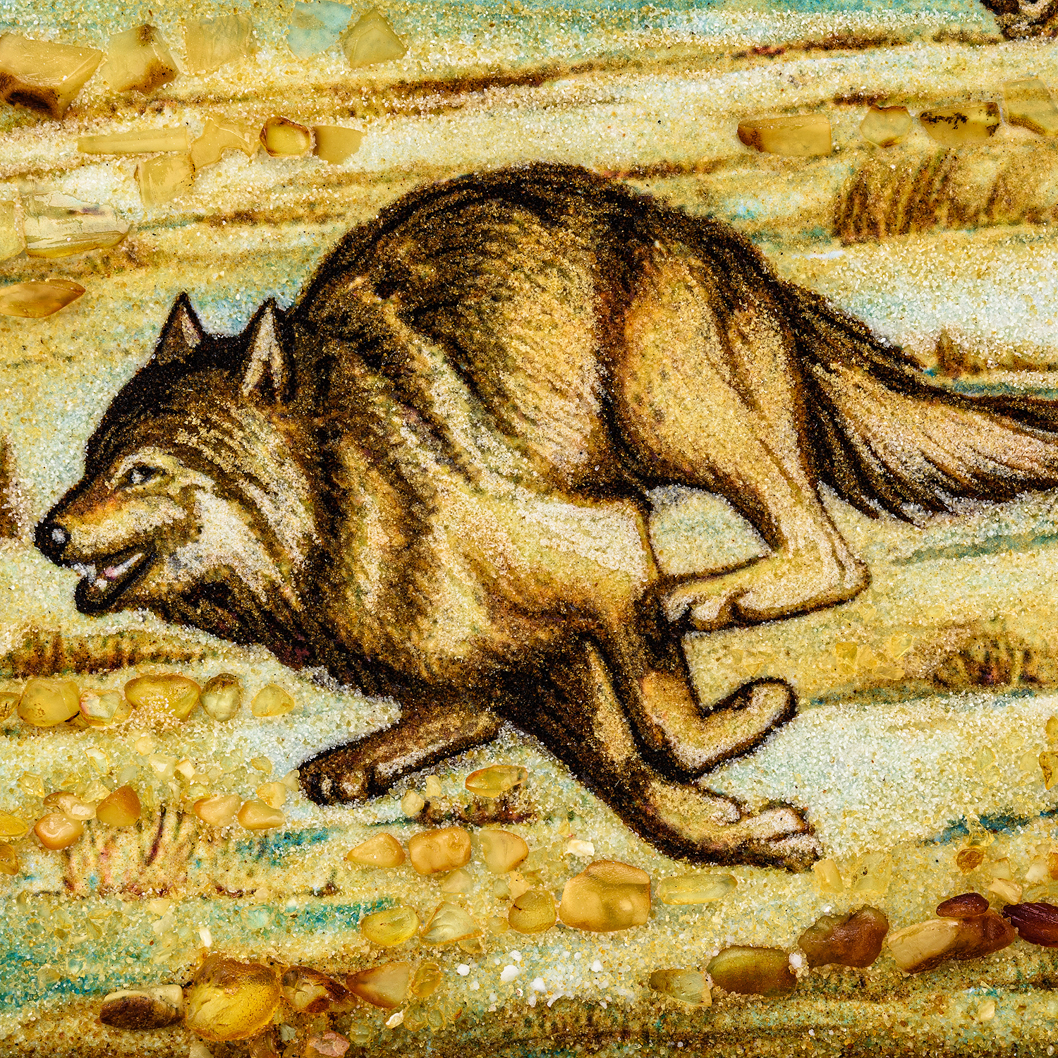 Картина янтарная "Погоня".Материалы: янтарь, янтарная крошка, деревянный багет.