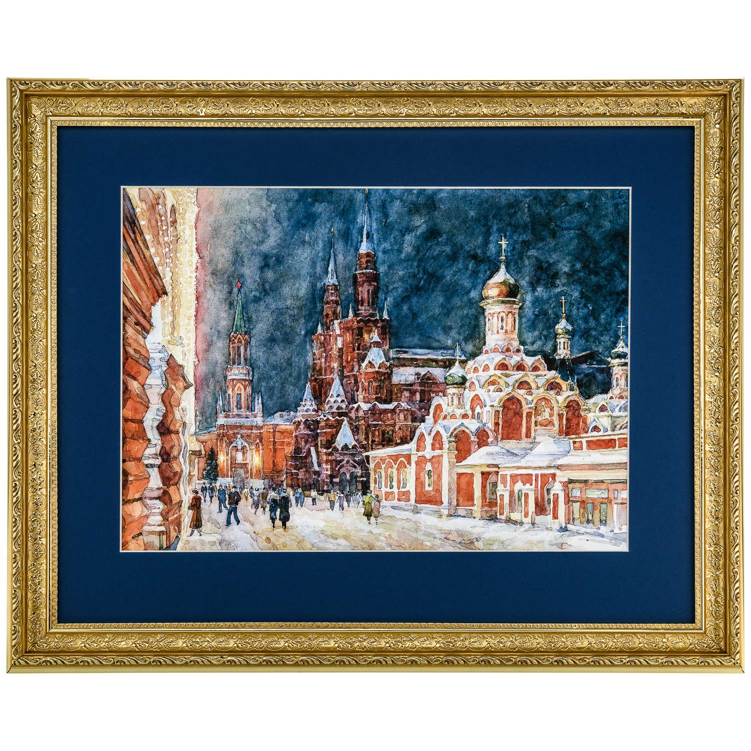 Картина "Никольская улица".Материалы: принт на холсте, паспарту, деревянный багет.