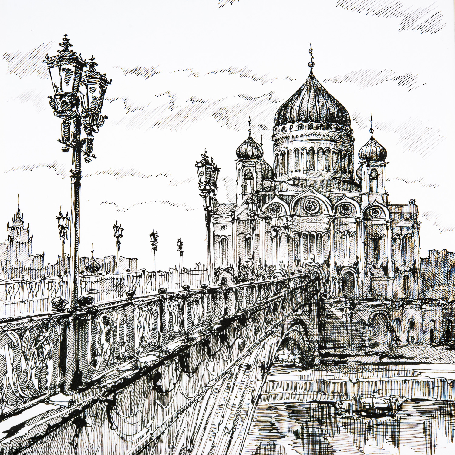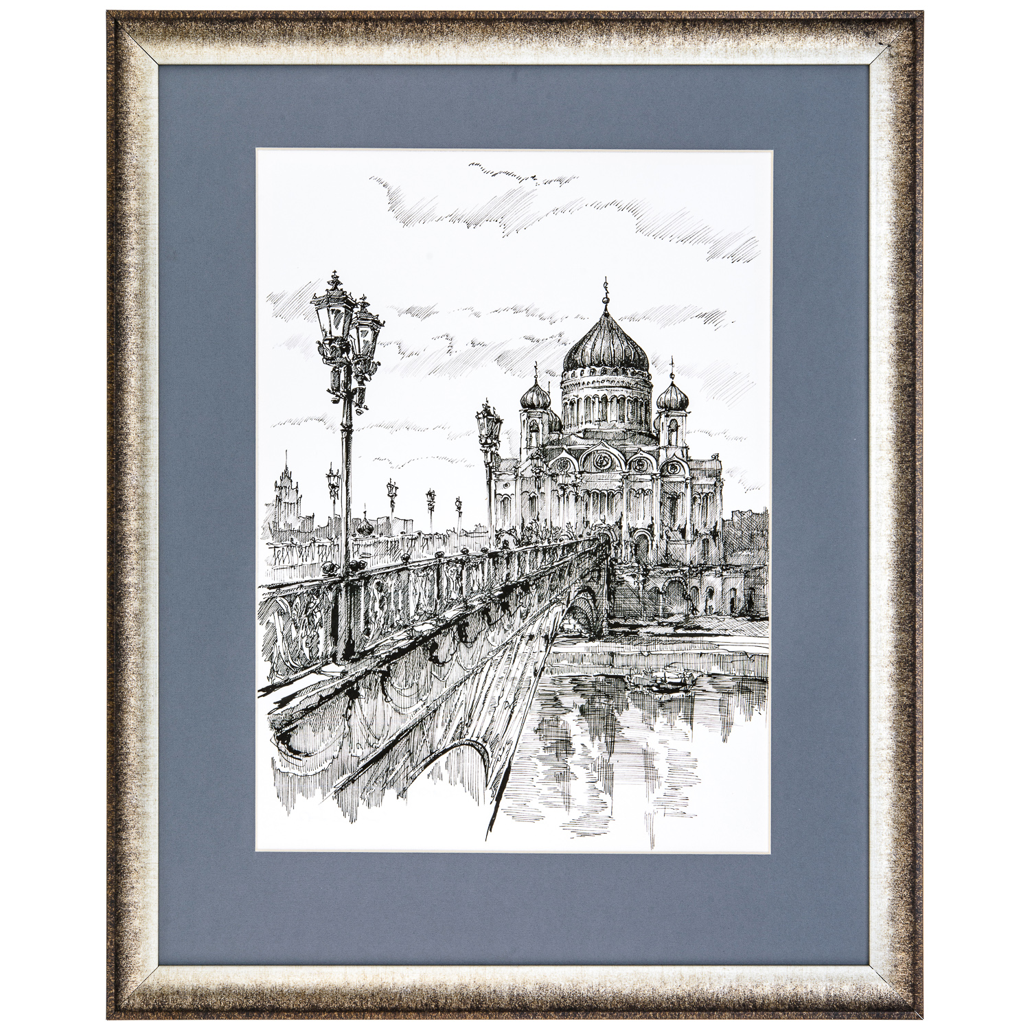 Картина "Храм Христа Спасителя".Материалы: принт на холсте, паспарту, деревянный багет.