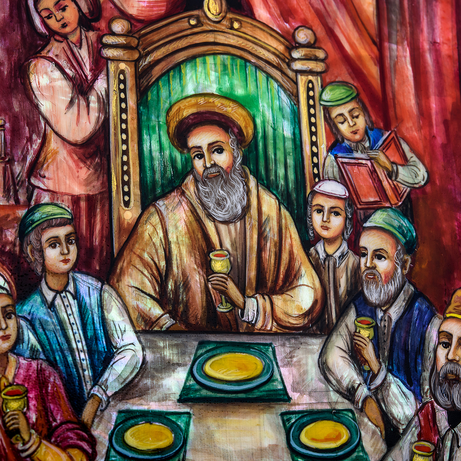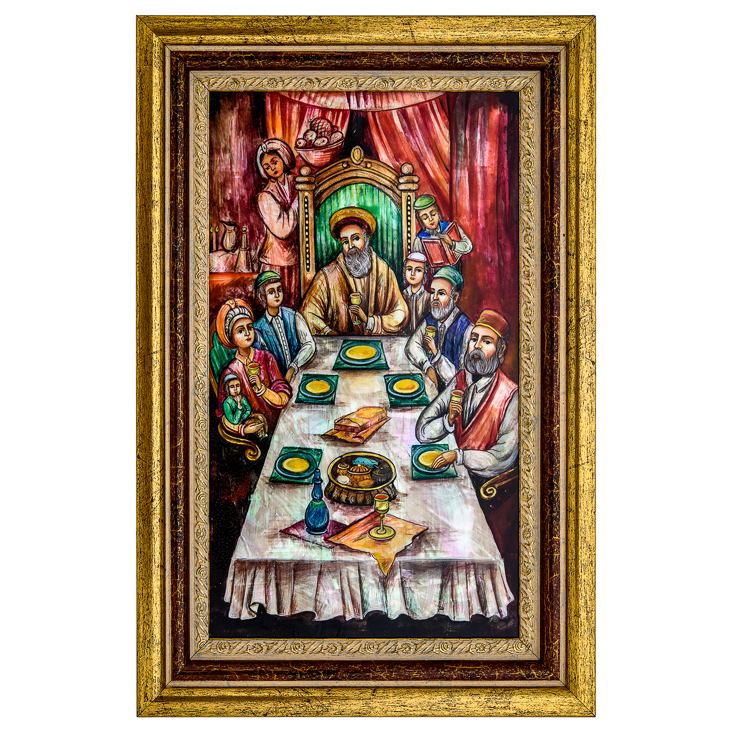Картина на перламутре "Еврейские мотивы".Материалы: перламутр, краски, деревянный багет.