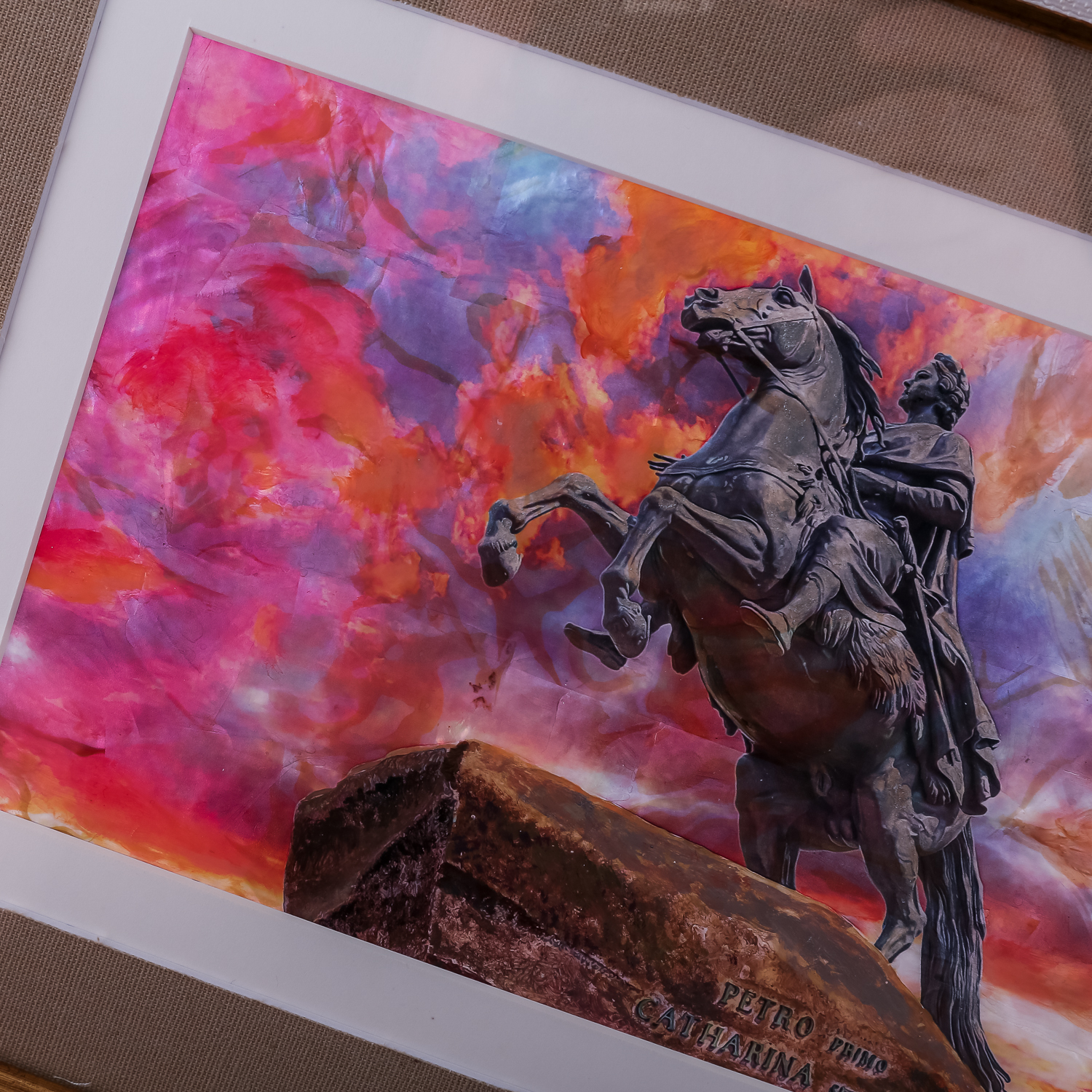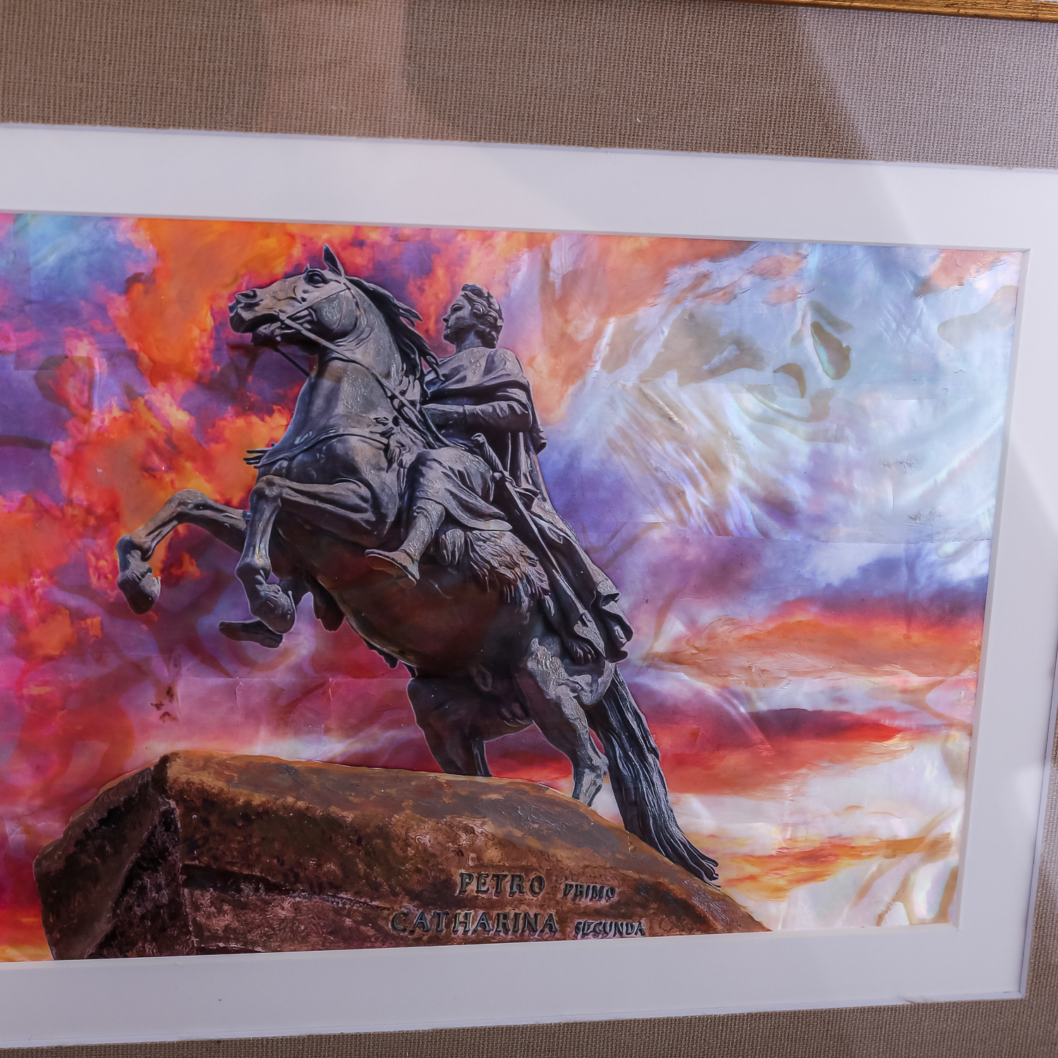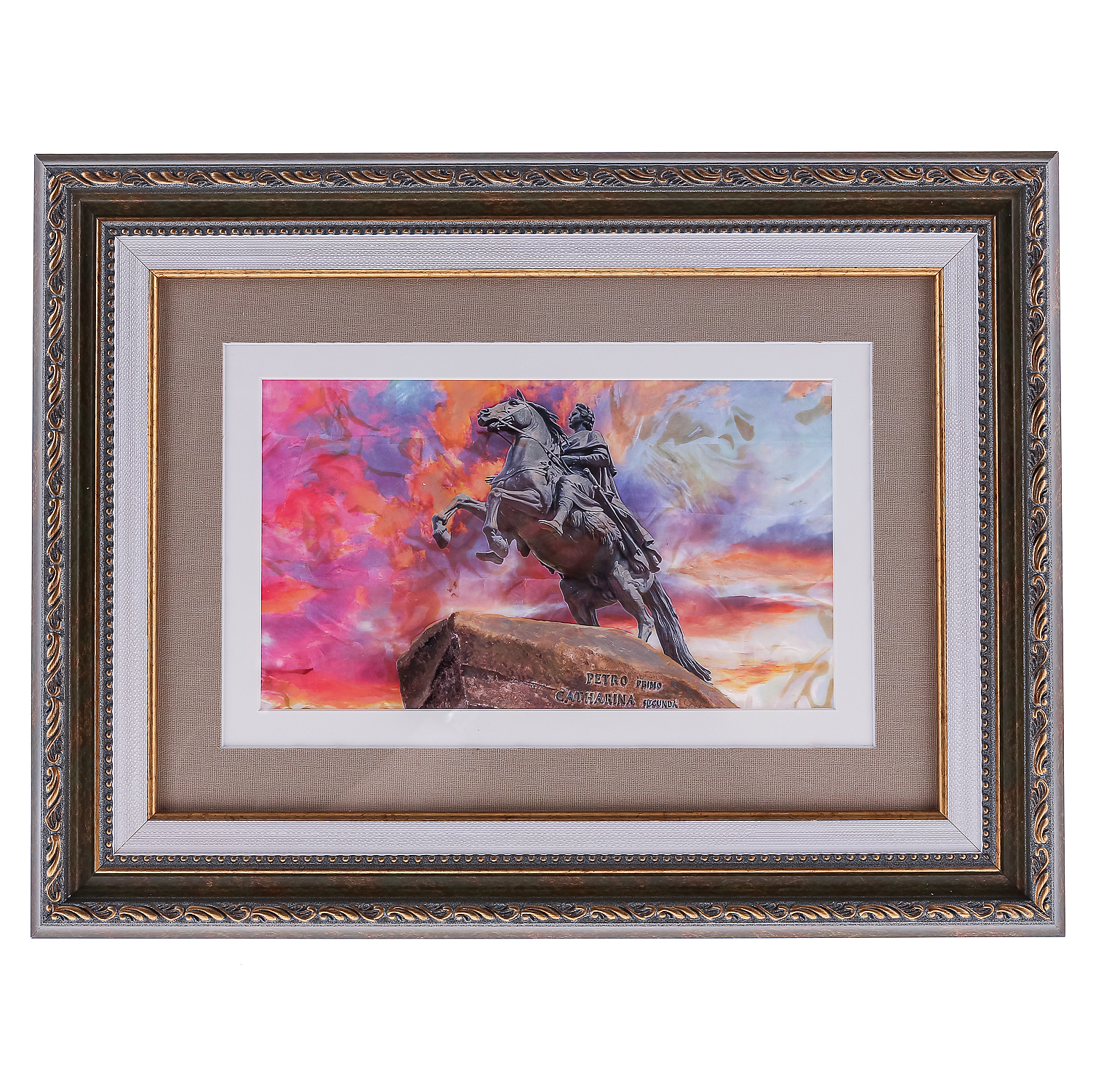 Русские подарки и сувениры → Интерьерные изделия → Картины → Картина на перламутре "Медный всадник" 42х32 см