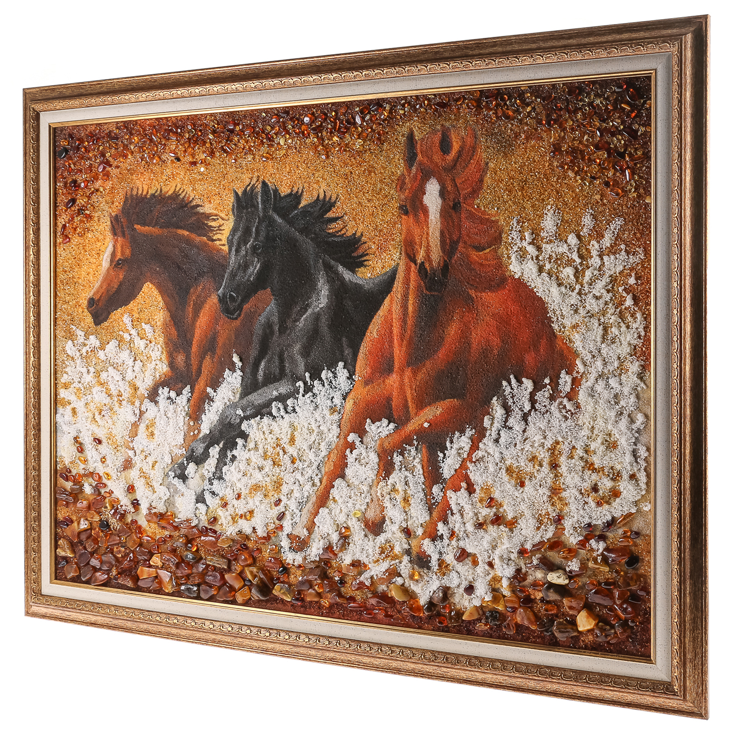 Картина янтарная "Лошади, бегущие по воде" 100х80 см