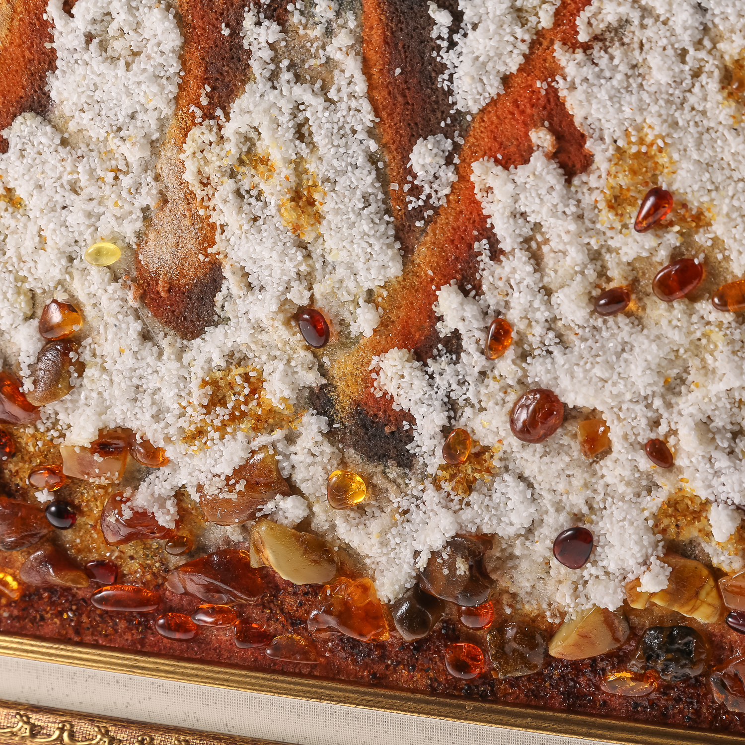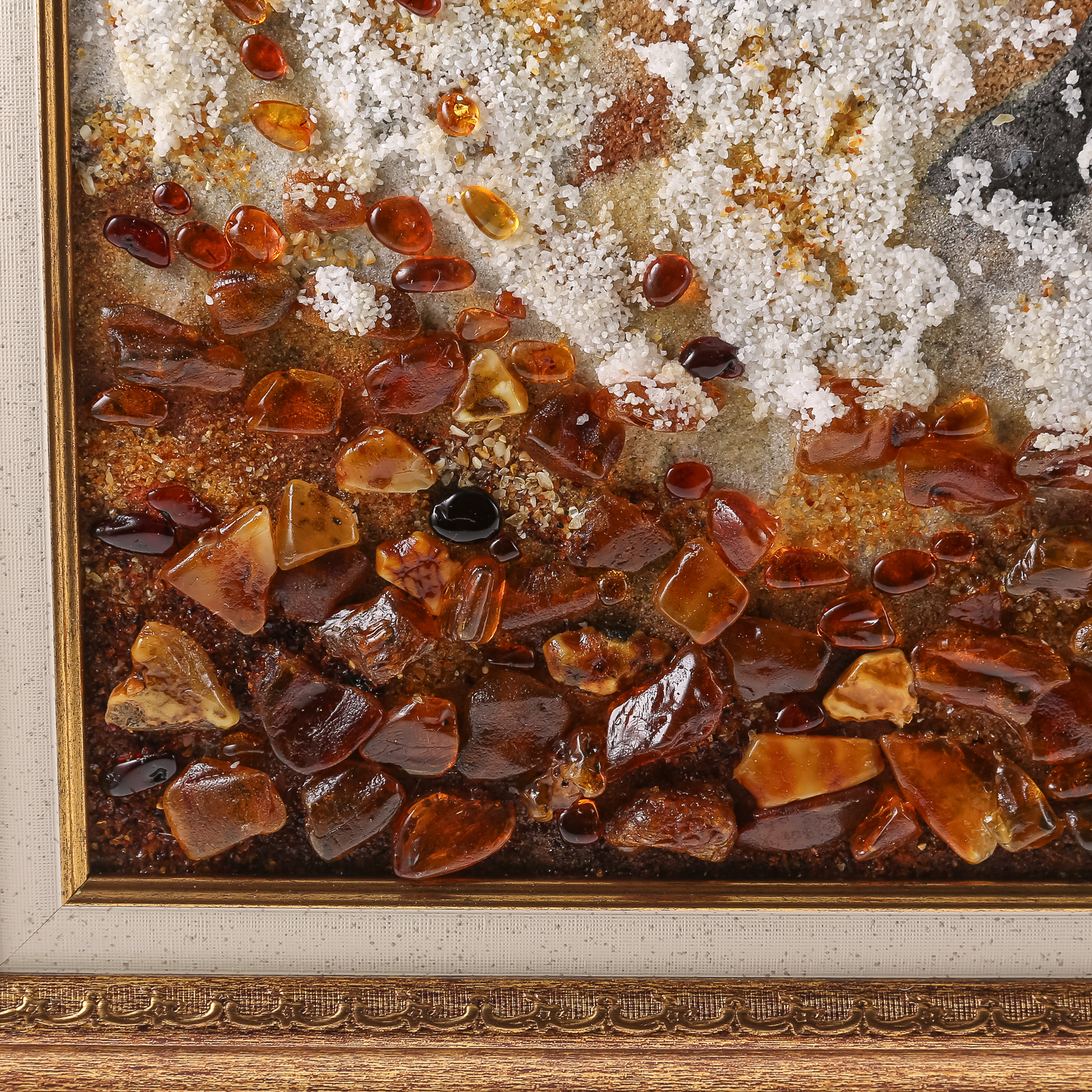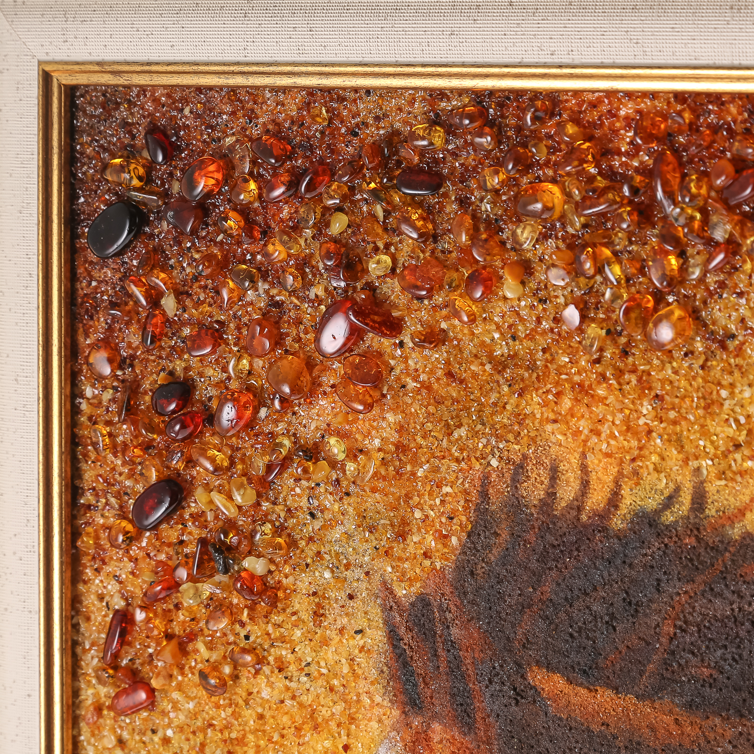 Картина янтарная "Лошади, бегущие по воде".Материалы: холст, краски, янтарь, деревянный багет.