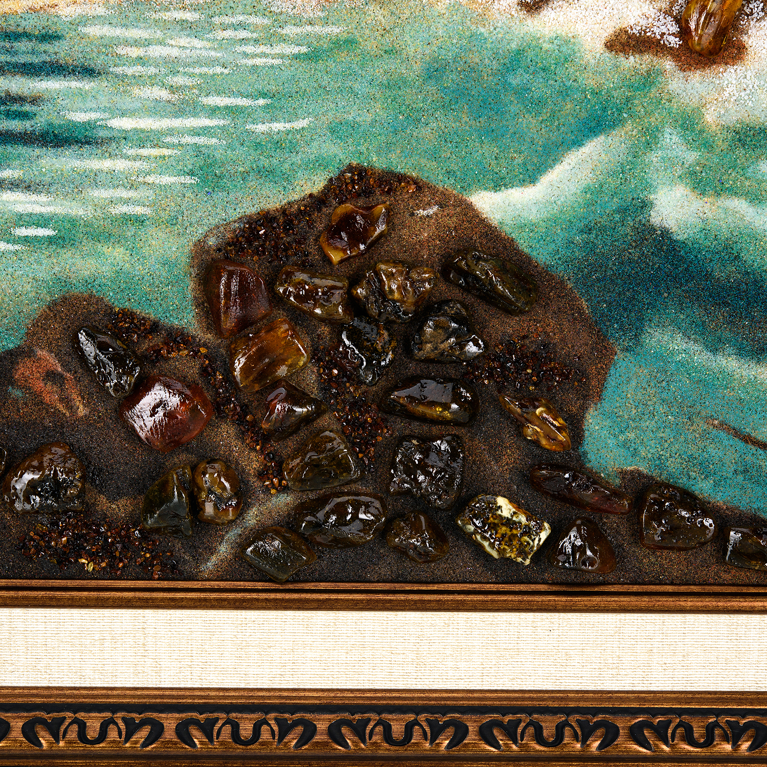 Картина янтарная "Шторм".Материалы: холст, краски, янтарь, деревянный багет.