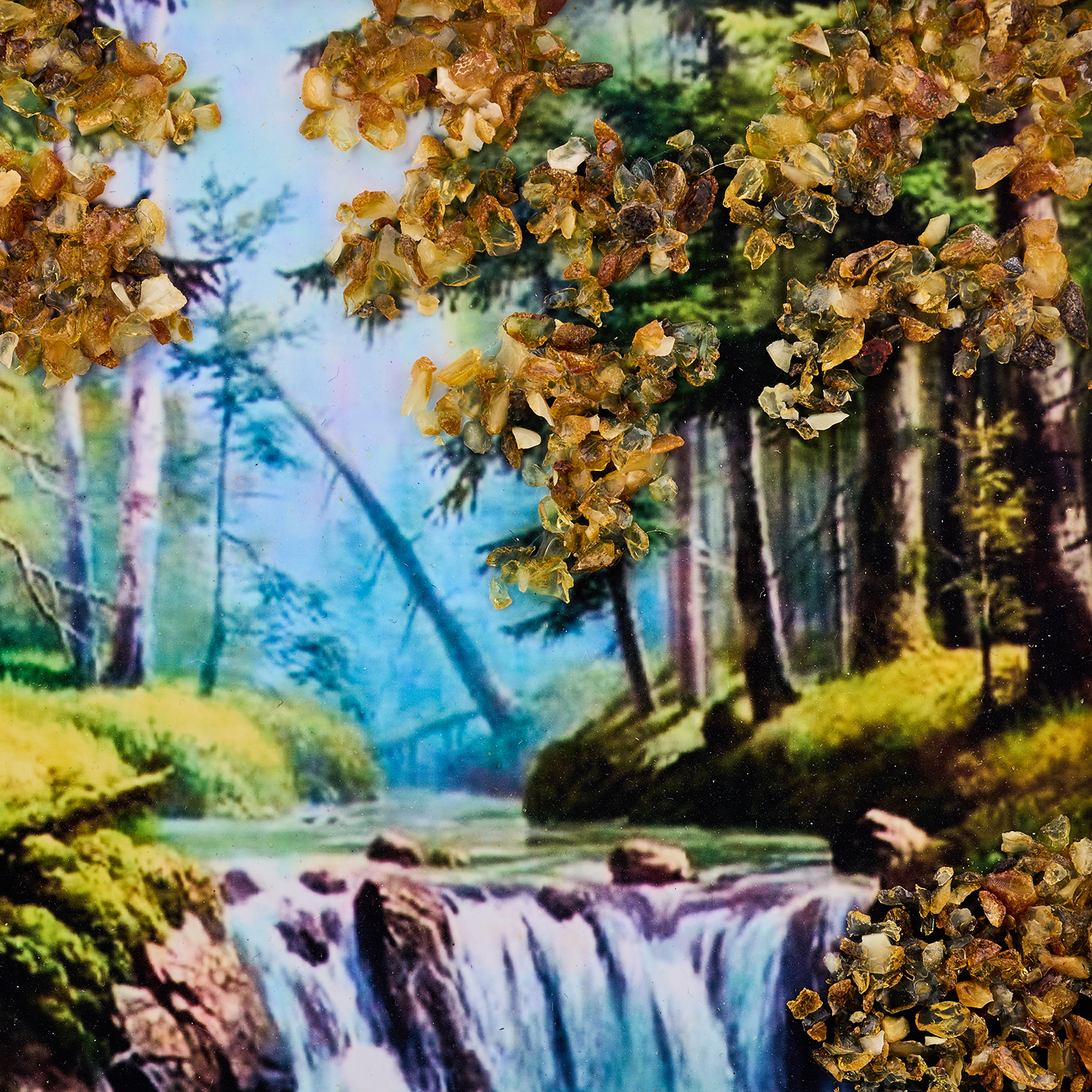 Картина янтарная "Пейзаж".Размер холста: 15х18 см