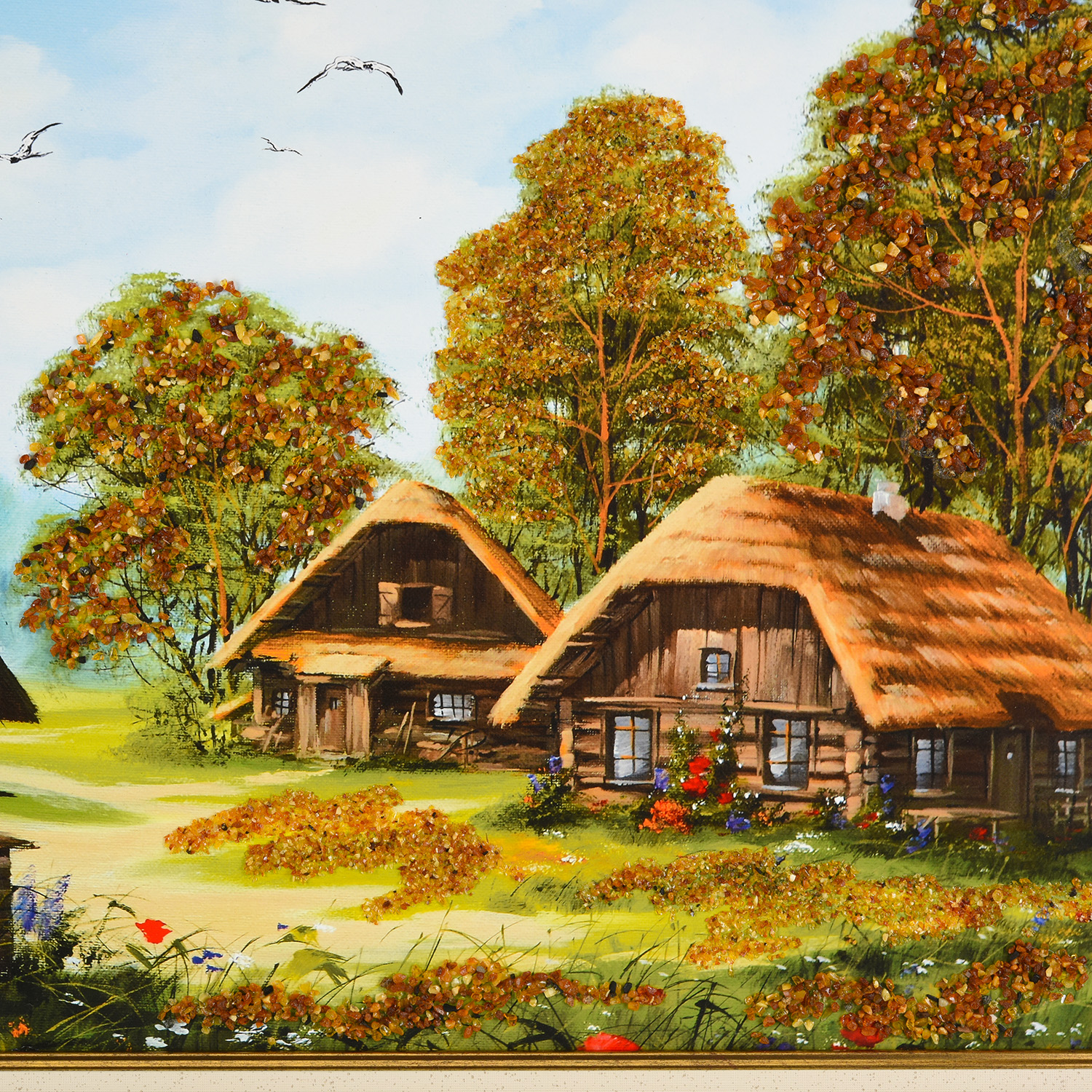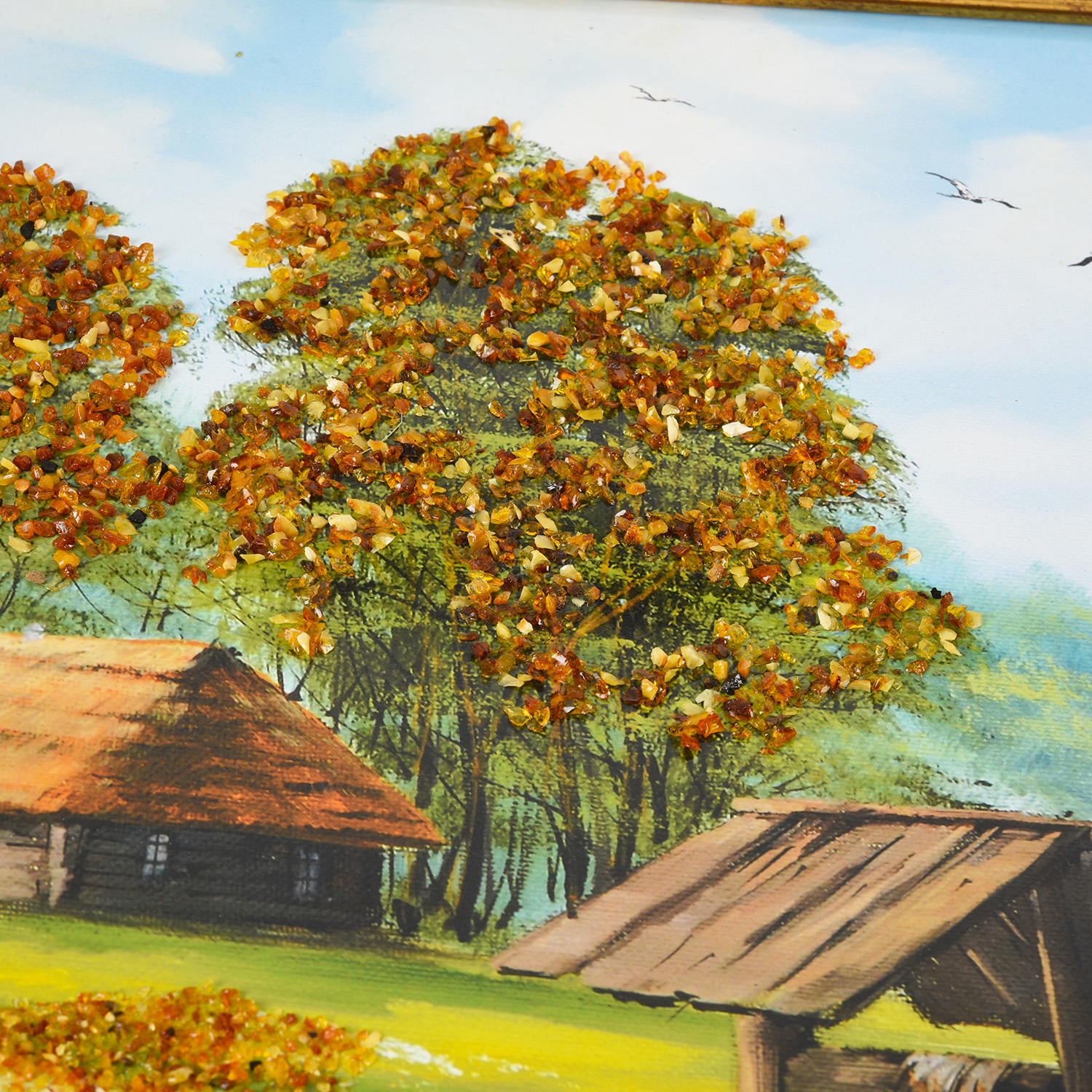 Картина янтарная "Пейзаж".Размер холста: 40х70 см