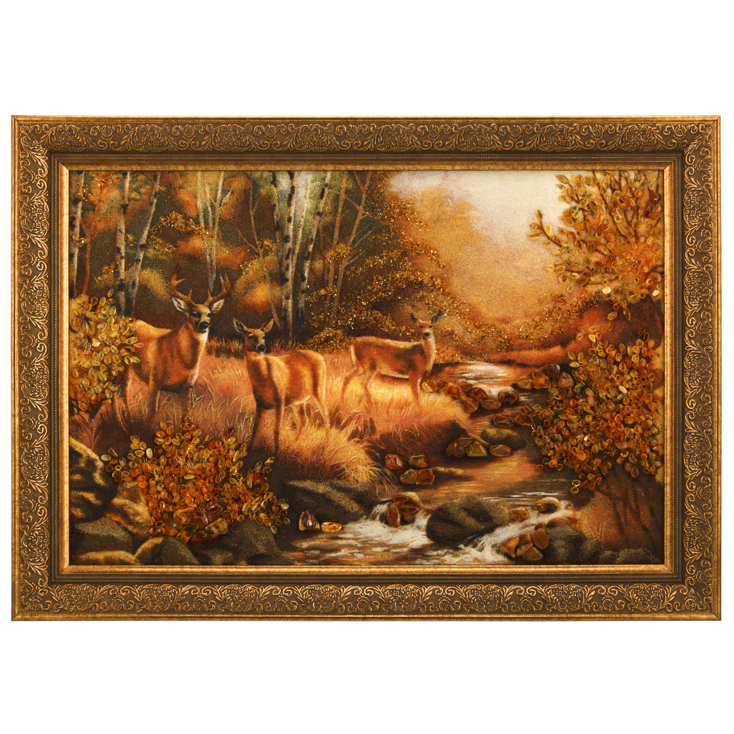 Картина янтарная "Олени в лесу" 60х40 см