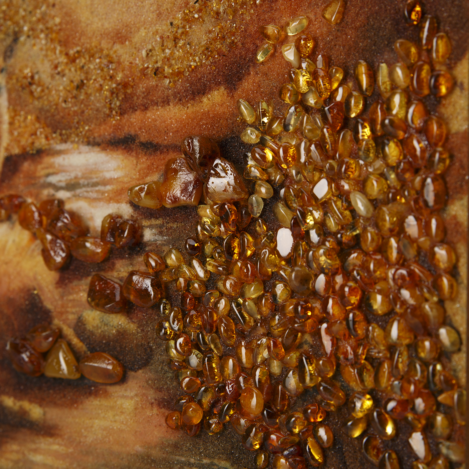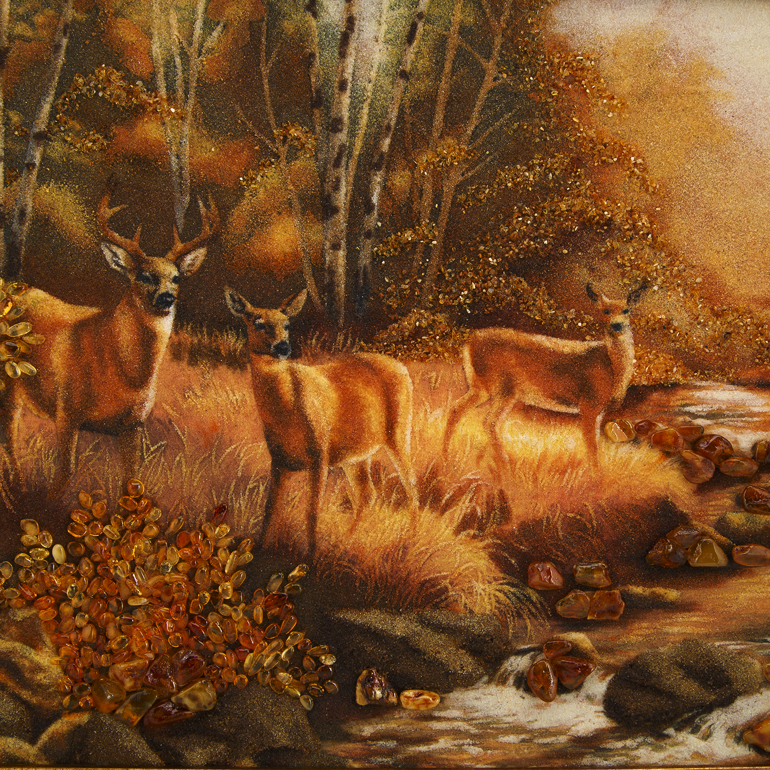 Картина янтарная "Олени в лесу".
