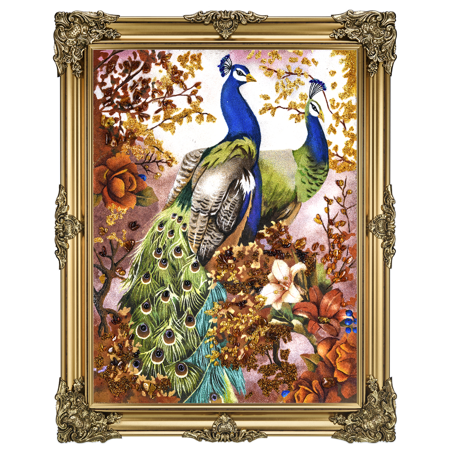 Картина янтарная "Павлин" 60х80 см