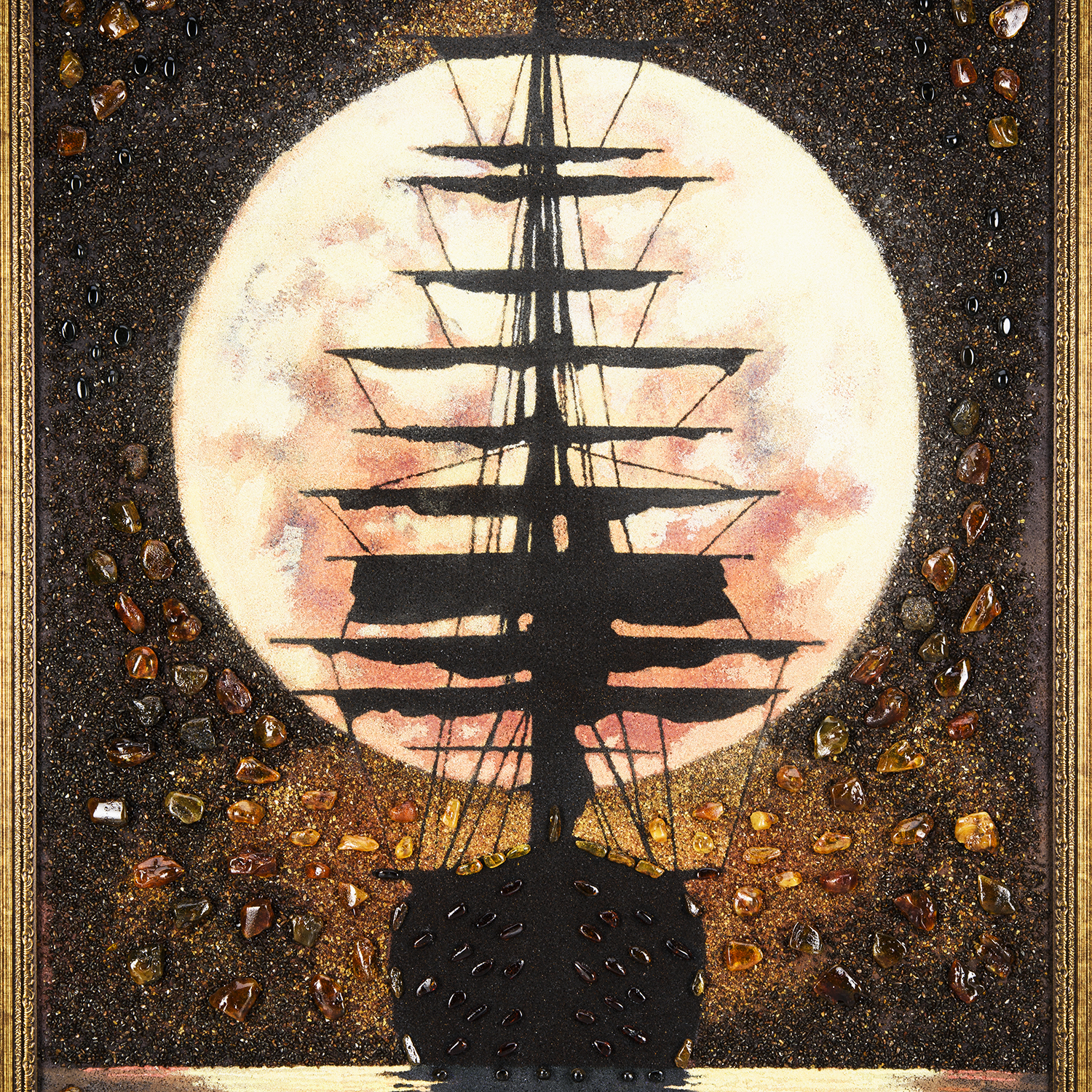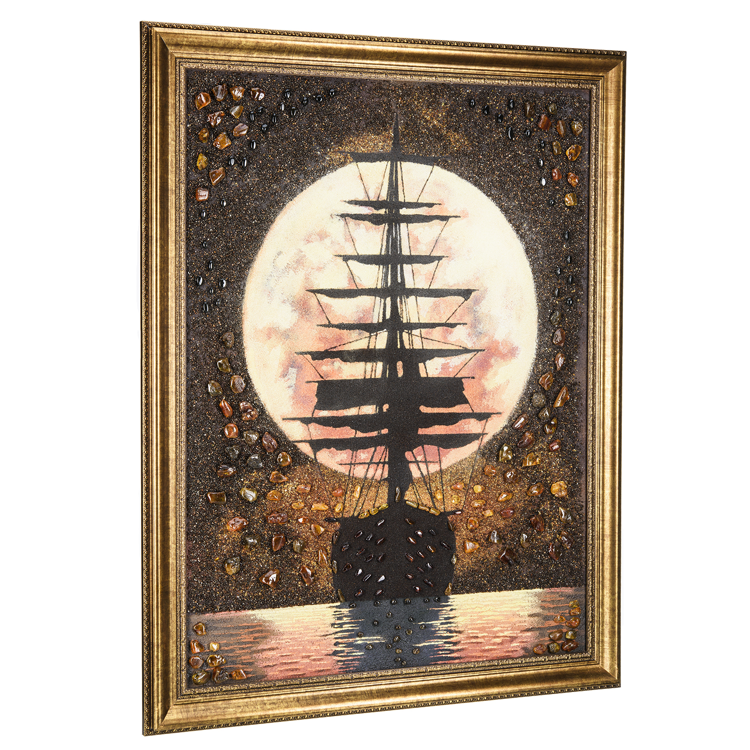 Картина янтарная "Закат и парусник" 60х80 см