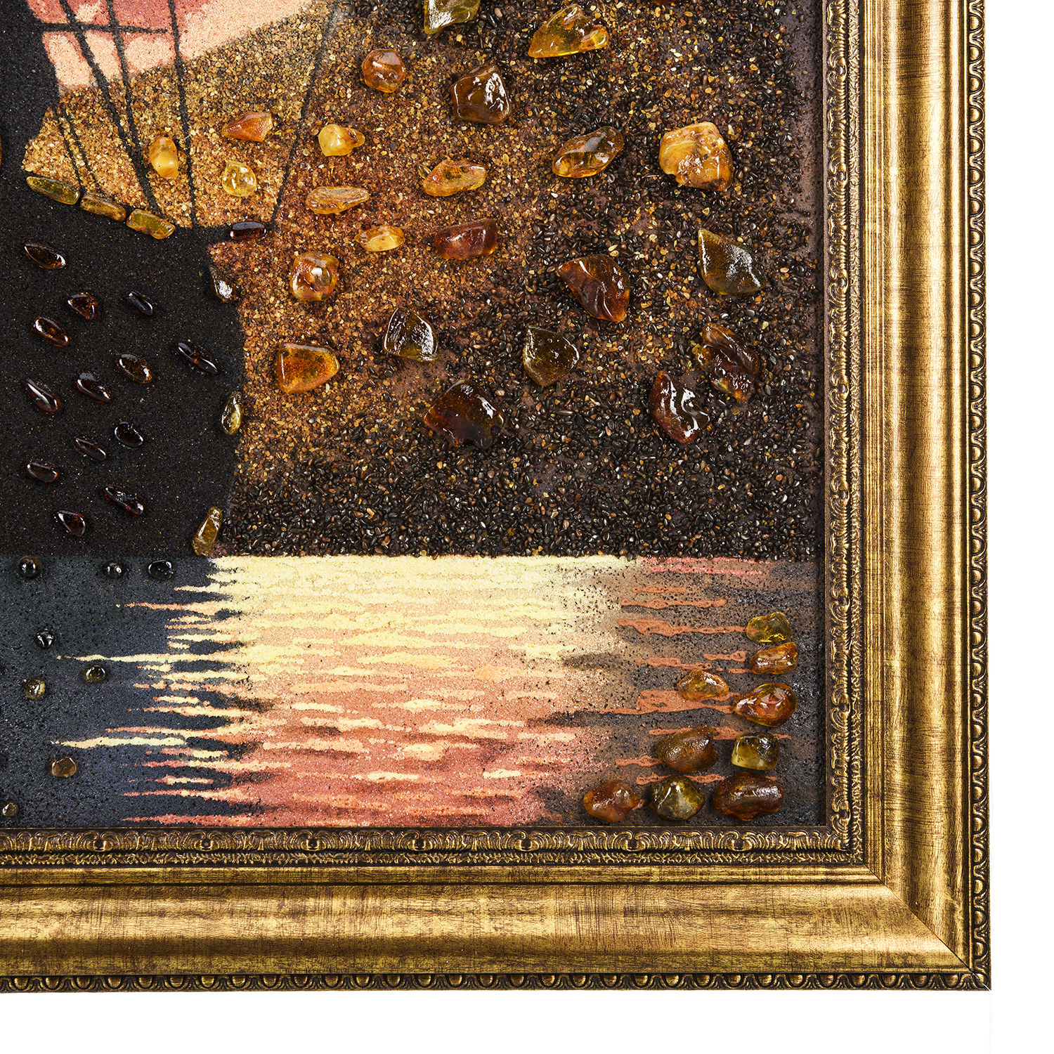 Русские подарки и сувениры → Интерьерные изделия → Картины → Картина янтарная "Закат и парусник" 60х80 см