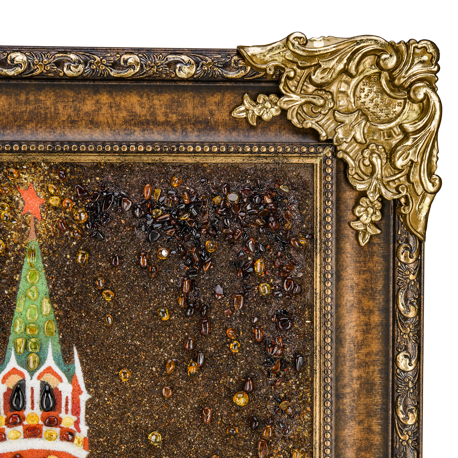 Русские подарки и сувениры → Интерьерные изделия → Картины → Картина янтарная "Спасская башня ночью" 60х40 см