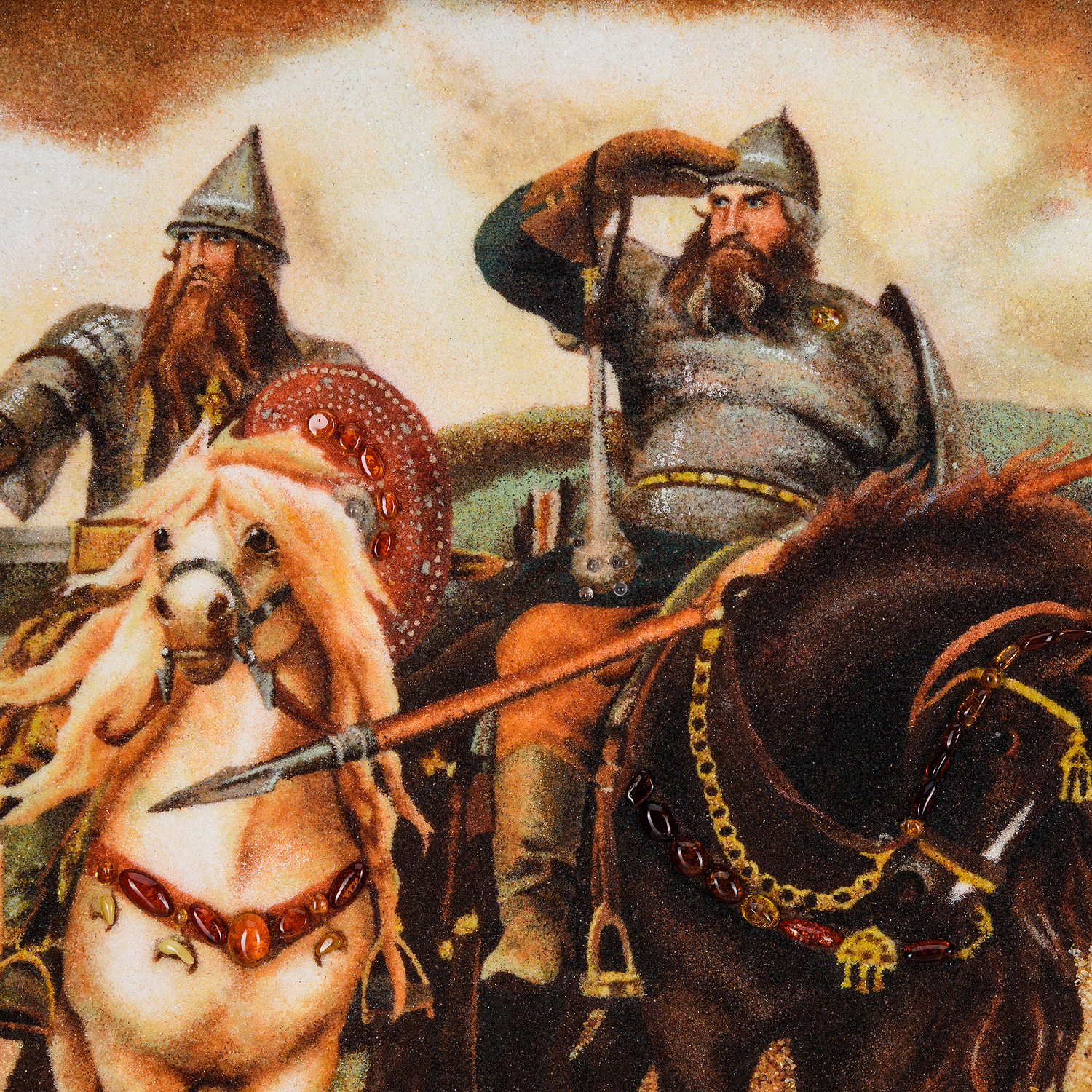 Русские подарки и сувениры → Интерьерные изделия → Картины → Картина янтарная "Три богатыря" 60х80 см