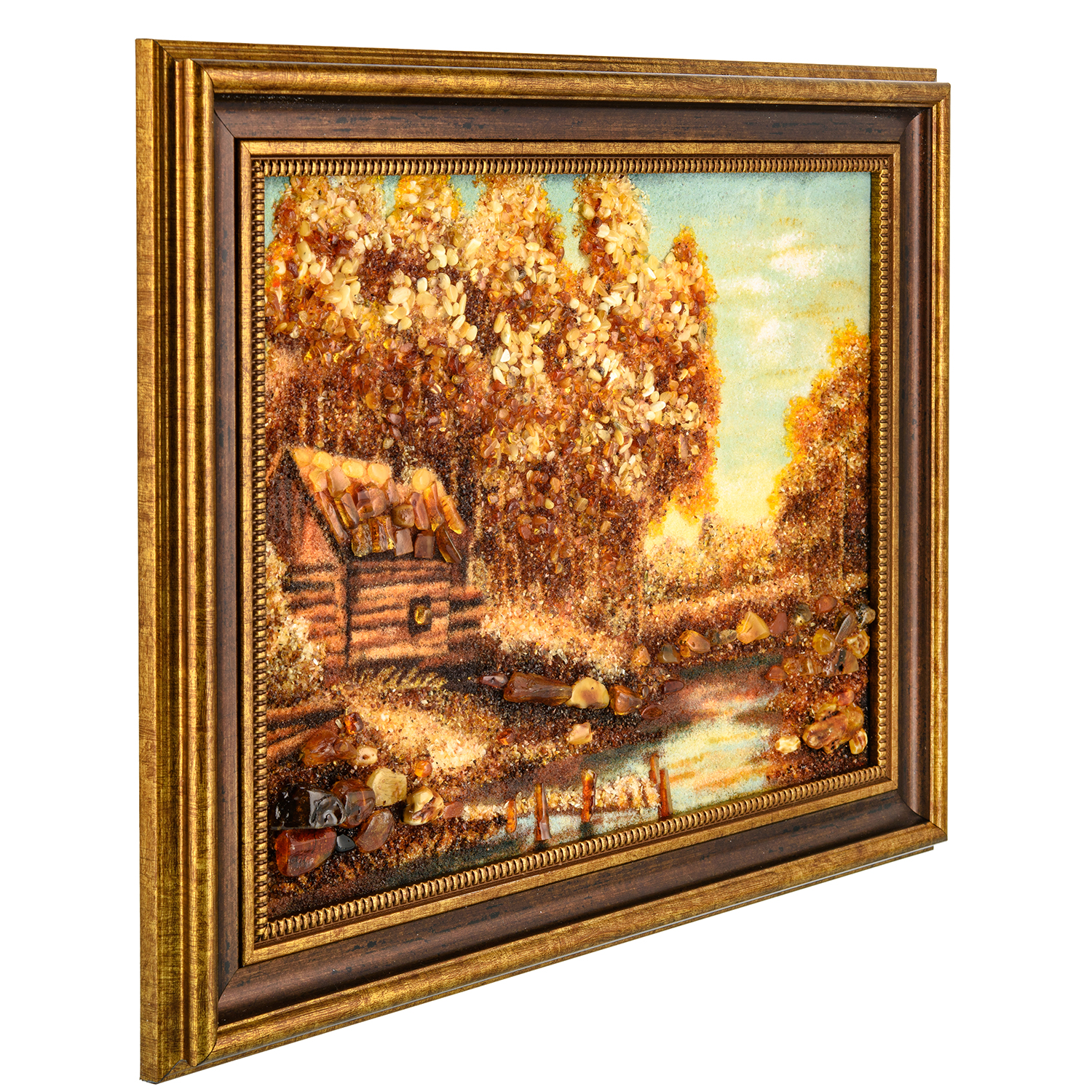 Русские подарки и сувениры → Интерьерные изделия → Картины → Картина янтарная "Лесная обитель" 30х40 см