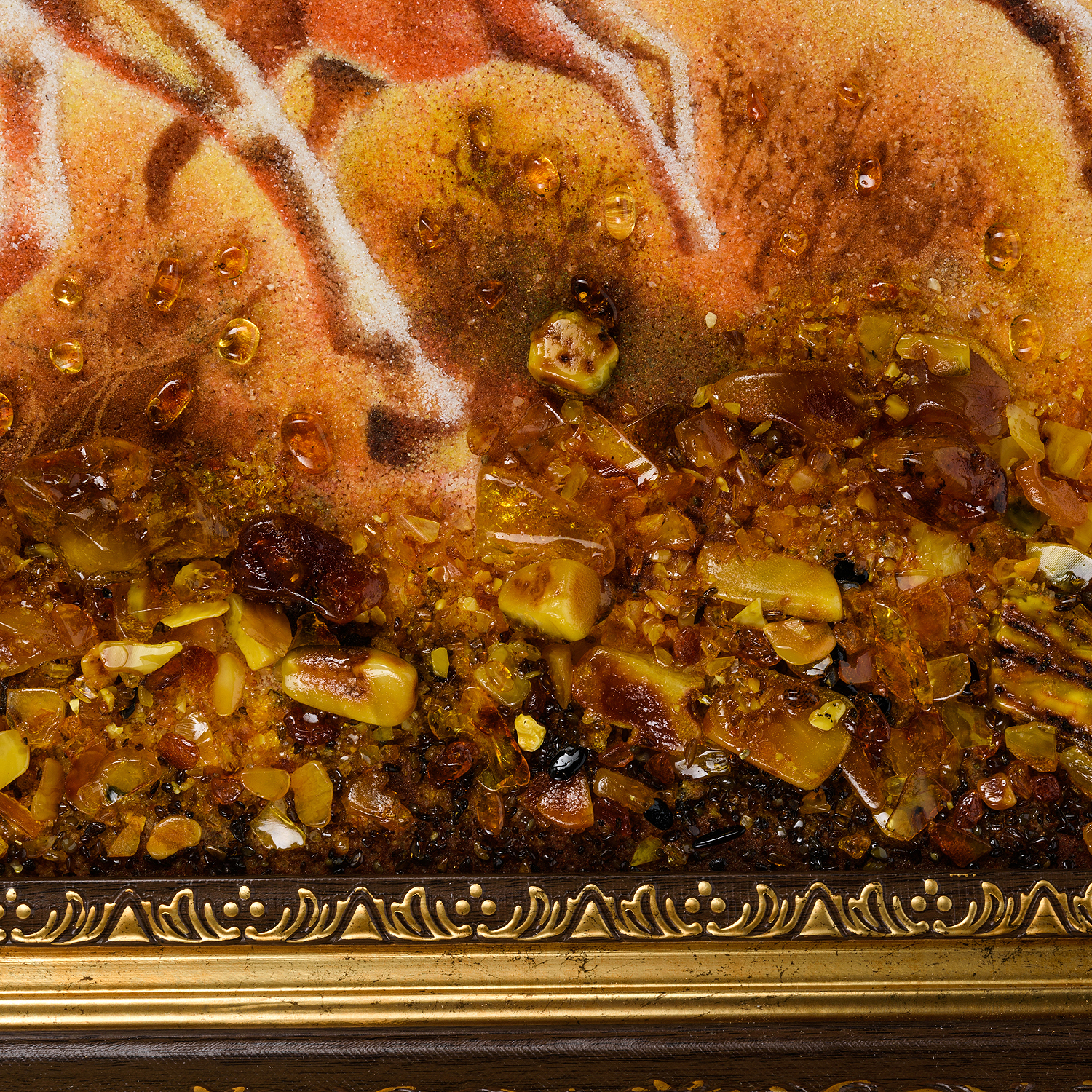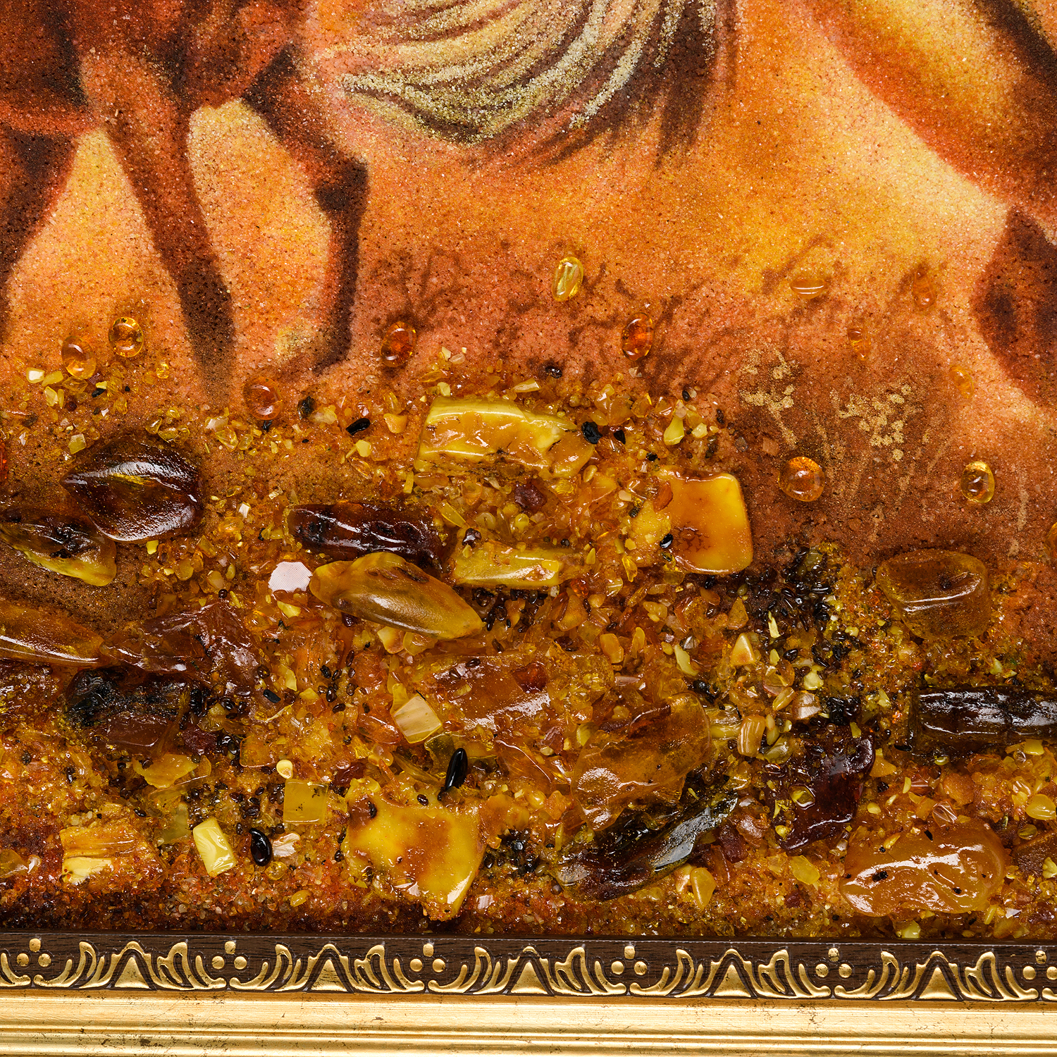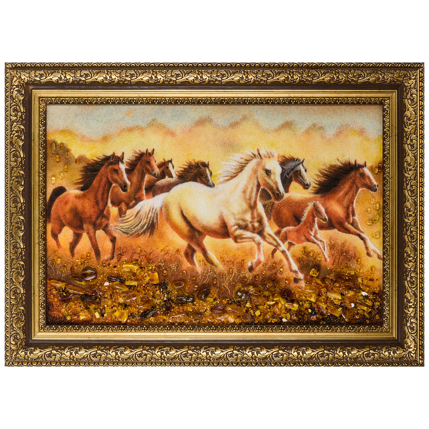 Русские подарки и сувениры → Интерьерные изделия → Картины → Картина янтарная "Кони с жеребенком" 40х60 см